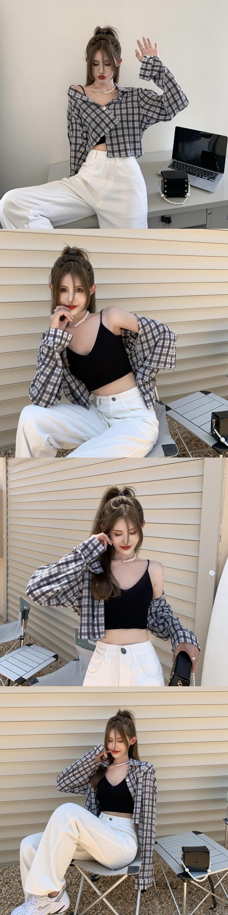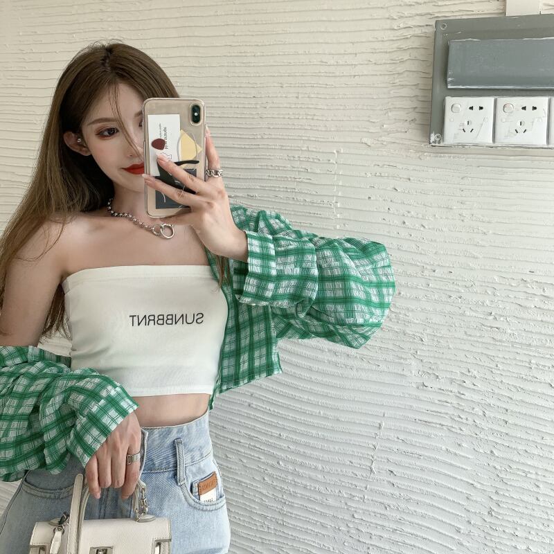 格子柄シャツ ショートルーズジャケット サマースタイル薄手トップス ロング 夏物 ブラックストロベリース52982376024