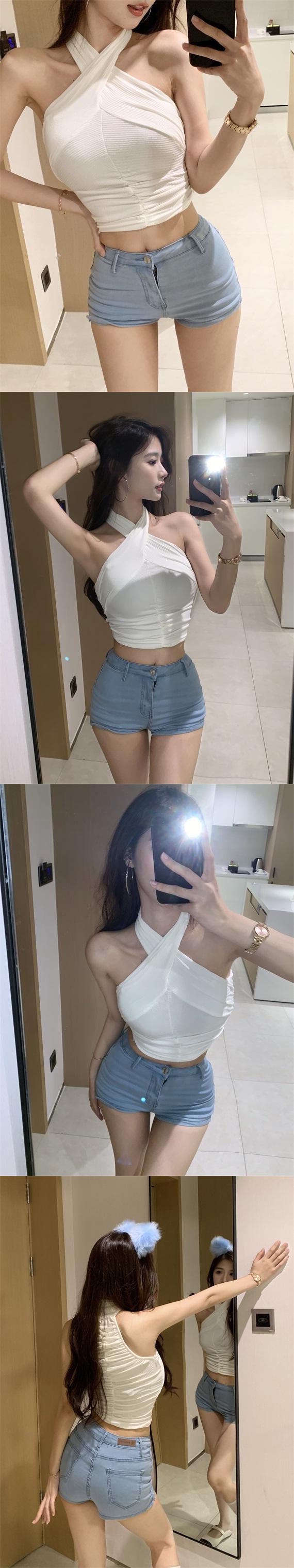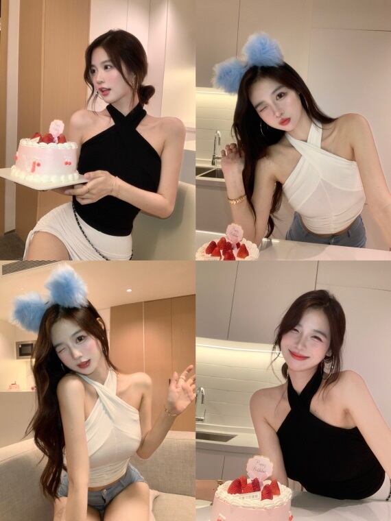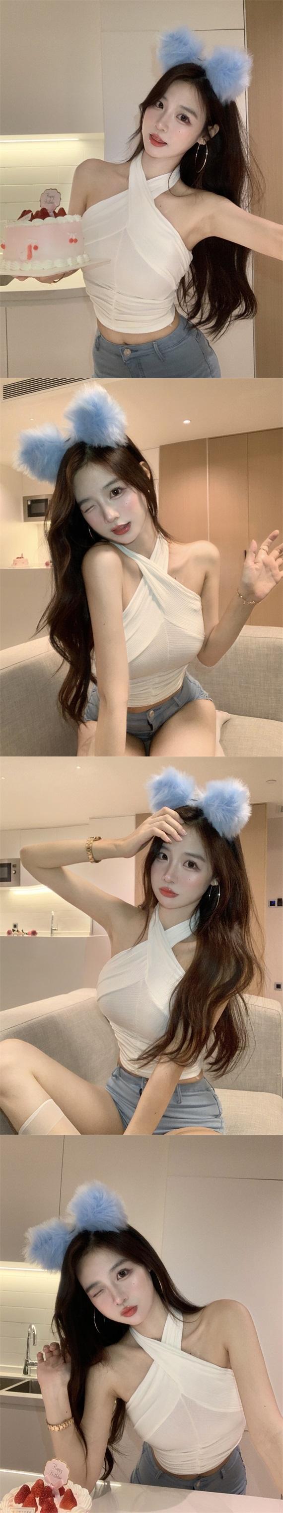 サマーブラッククロスホルタートップス 夏物 ヨーロピアン ブラックストロベリース32107823509