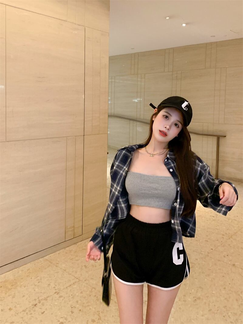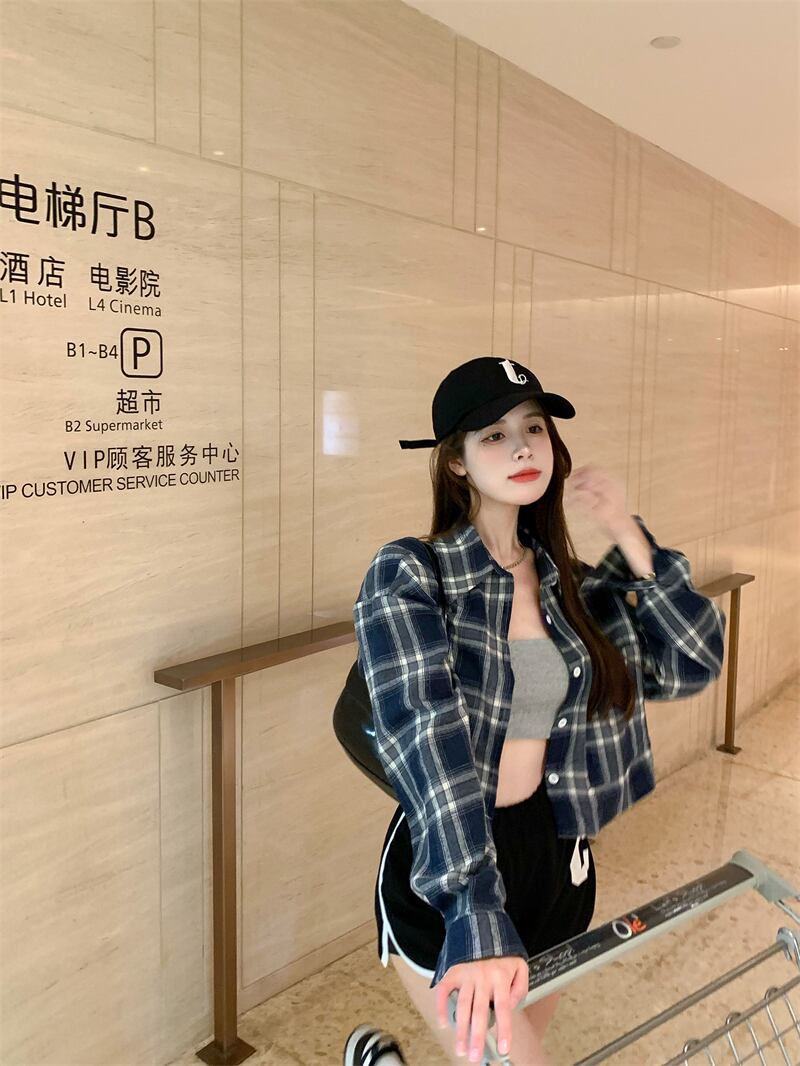 格子柄シャツ ショートスリムジャケット サマートップス ロング 夏物 ブラックストロベリース59883652910