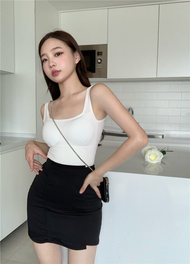 スカート サマーショートブラックハイウェストウェスト薄手 夏物 ブラックストロベリース13991812446