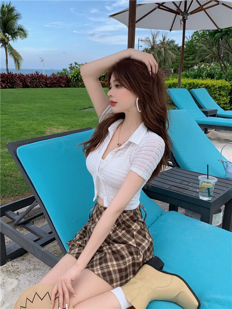 プリーツシャツ サマー薄手ショートホワイト半袖スリーブトップス ハーフスリーブ 夏物 ブラックストロベリース80070550721