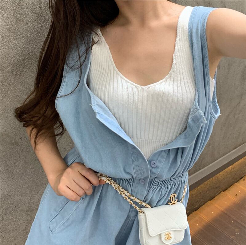 ジーンズ ハイウェストスリムルーズショーツ サマー薄手ワンピースパンツ 夏物 ブルマー ブラックストロベリース55557770785
