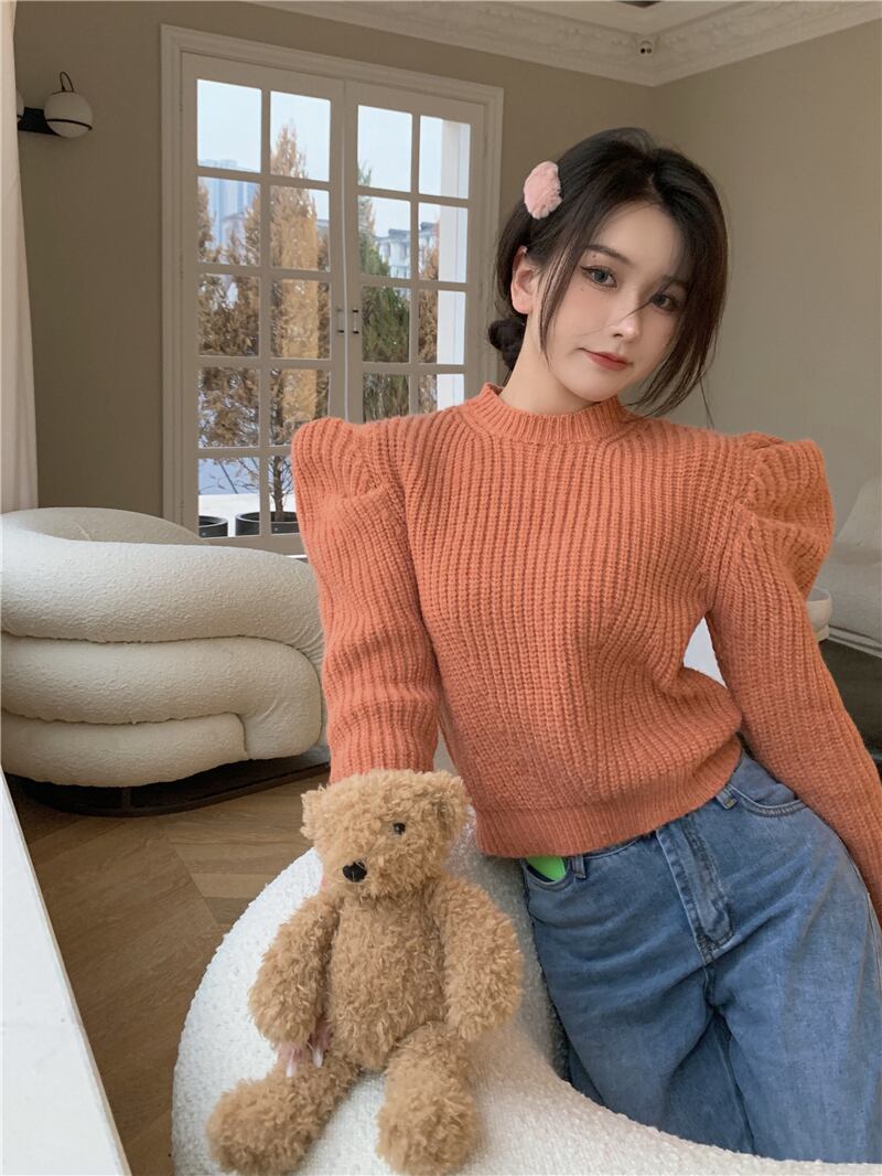 セーター スリーブスリムショート長袖ニットシャツ ラウンドネックプルオーバー トップス ロング ウィンター 冬物 Oネック ブラックストロベリース48425519246