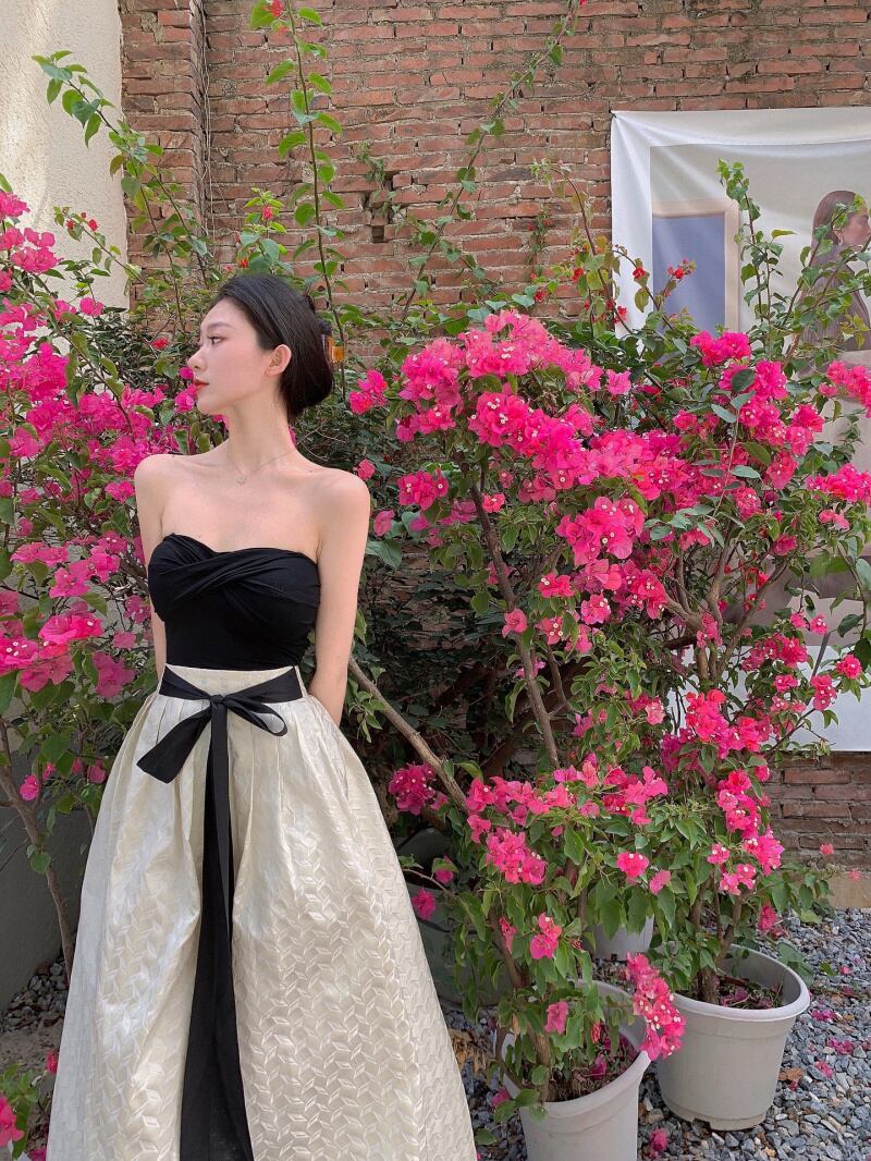 色:スカート,黒いチューブトップ