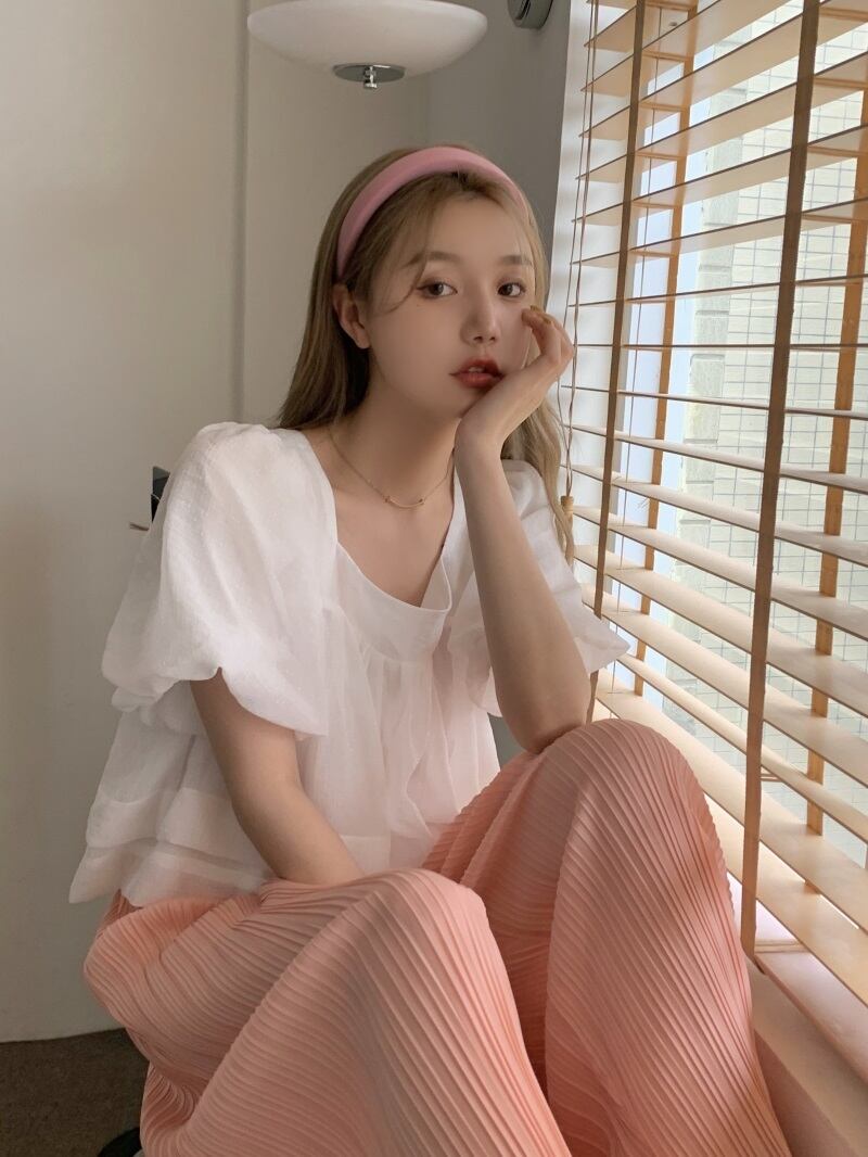 シフォンシャツ ルーズスリーブホワイトサマー薄手 夏物 ブラックストロベリース67704611577