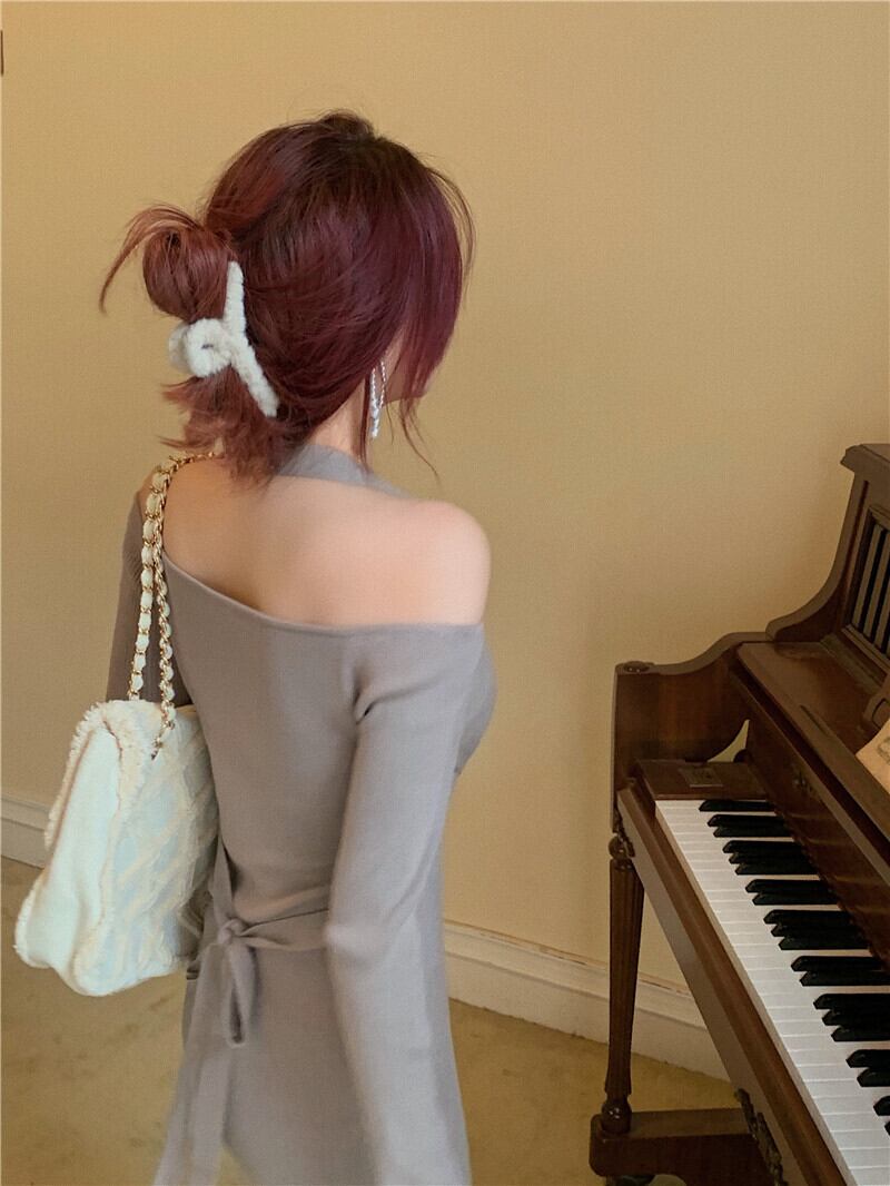 ニットドレス ストラップレスミディスカート スプリングスタイル ロング 春物 ブラックストロベリース12409414248