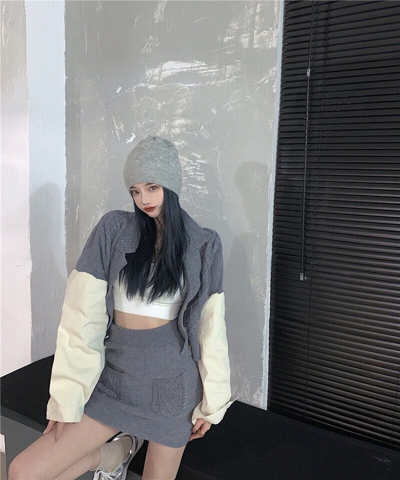 ショートニットセーター ルーズトップス スプリングスタンダードカーディガンジャケット レトロ 春物 ステッチ ブラックストロベリース79298532046