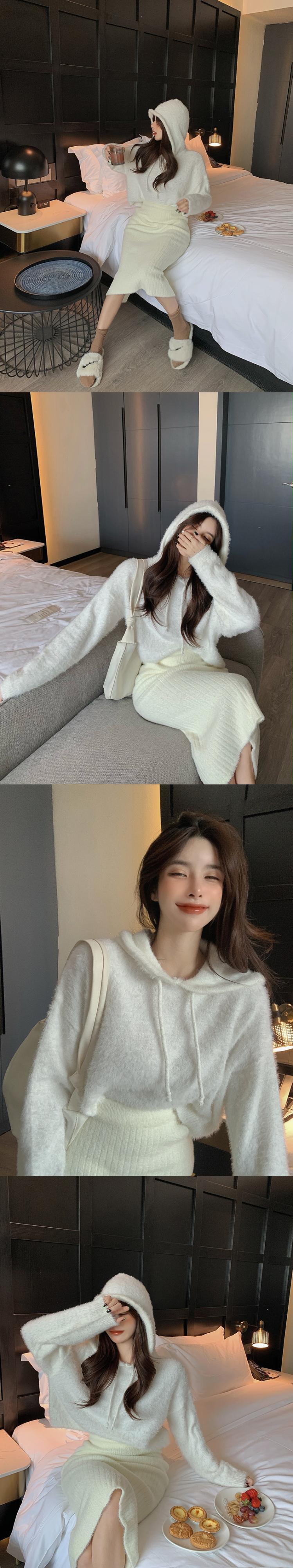 ウールセーター コート フードルーズショートニットスプリングオータム薄手トップス 春物 秋物 ブラックストロベリース99659509337
