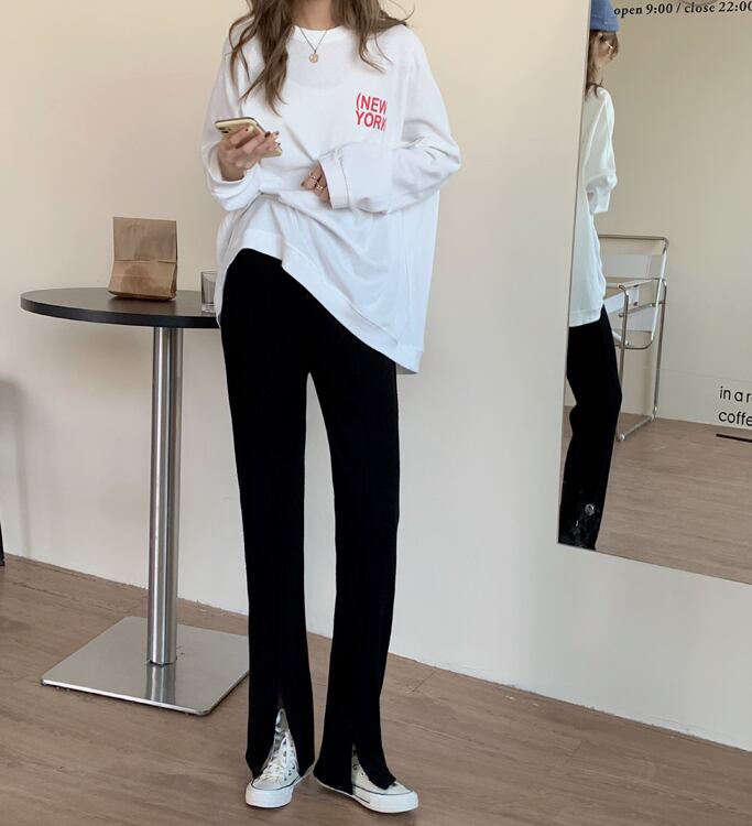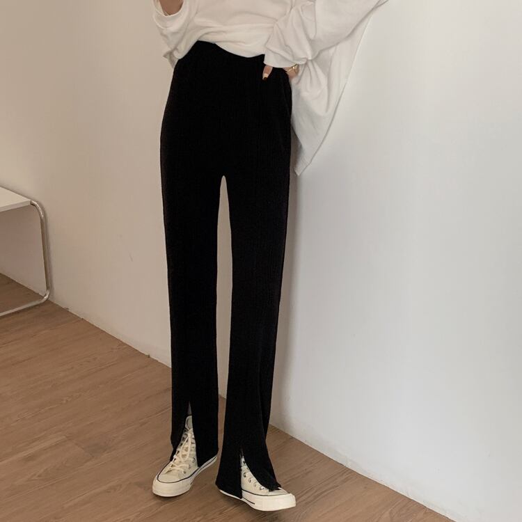 パンツ ハイウェストウェスト薄手スプリングブラックルーズ 春物 ブラックストロベリース98888494313