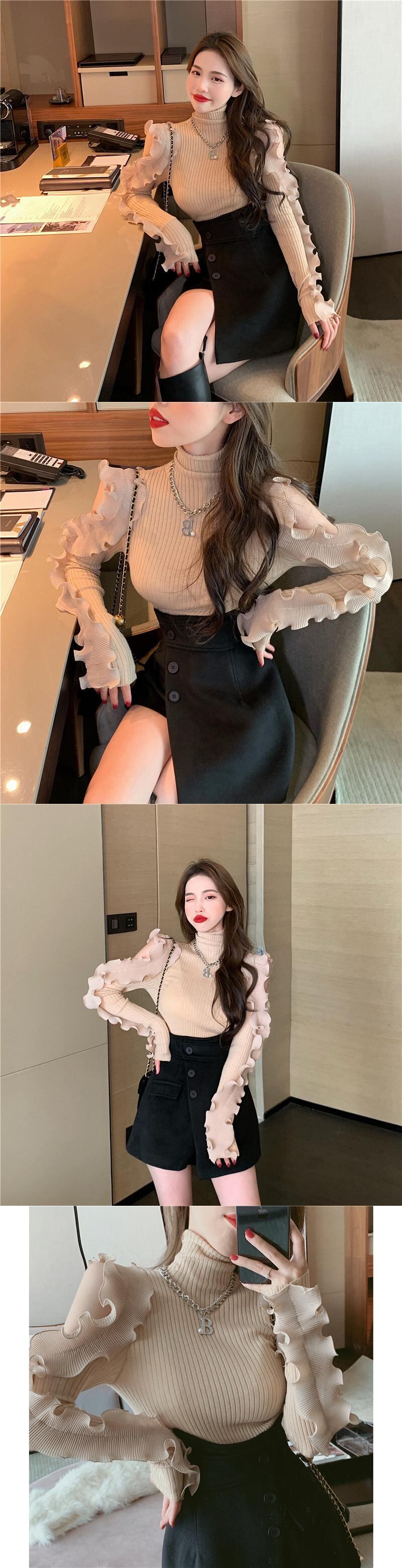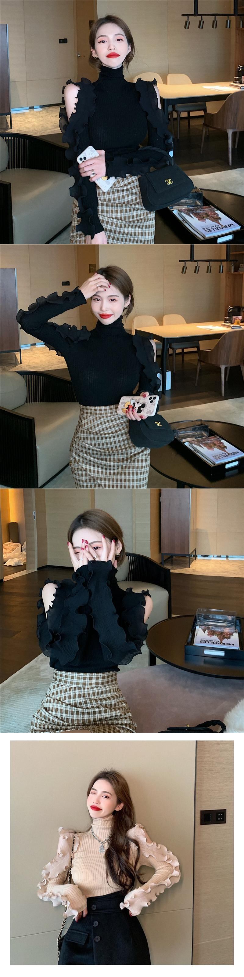 ニットセーター シャツ ショートスプリングトップス ロング 春物 オフショルダー ブラックストロベリース54154145213
