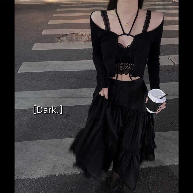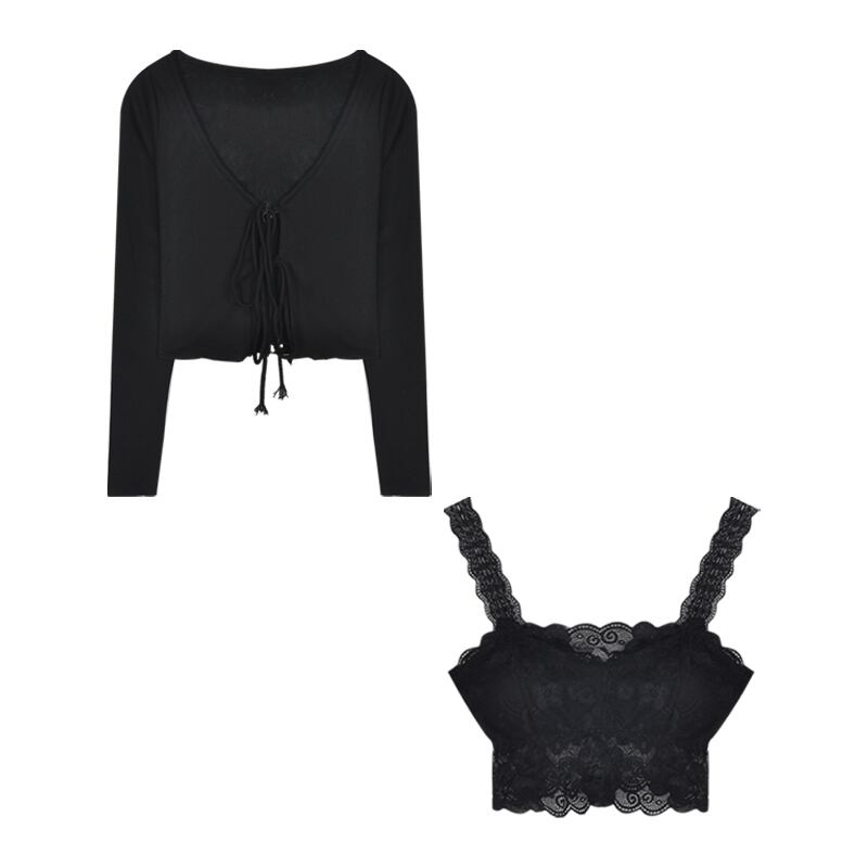 ニットセーター ショートカーディガンジャケット スプリングスタイルブラックトップス ロング 春物 ブラックストロベリース32340645391