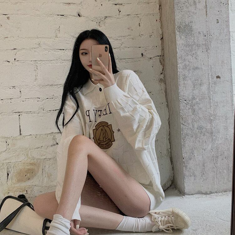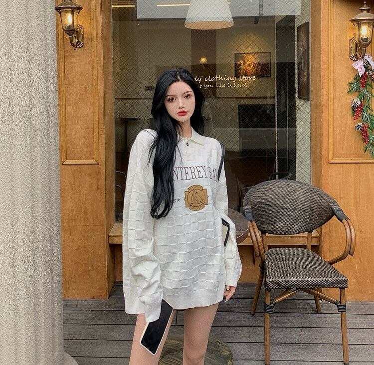 ニットセーター ジャケット レディーススプリングホワイトルーズスタイルプルオーバー トップス 春物 ブラックストロベリース83142190406