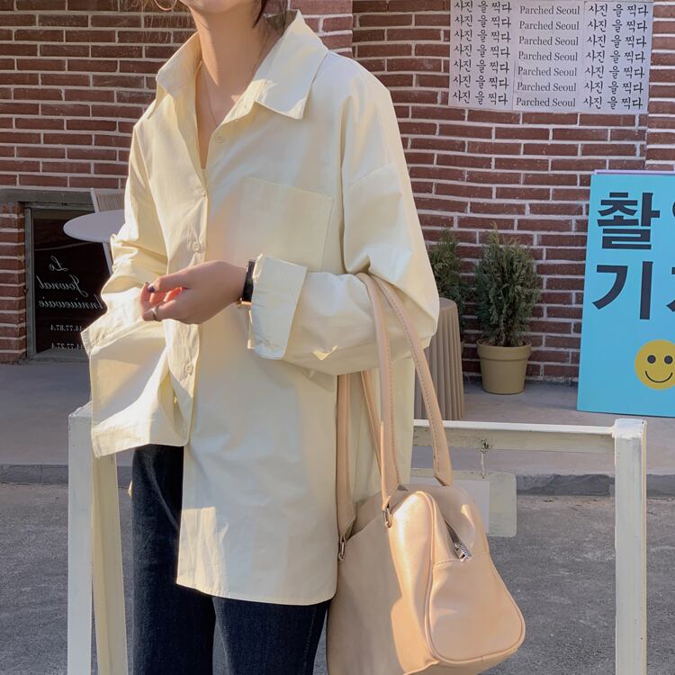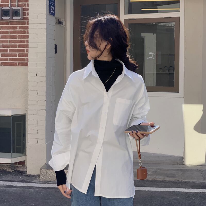 シャツ ジャケット ルーズスタイルスプリングホワイトトップス ロング 春物 ブラックストロベリース68120556637