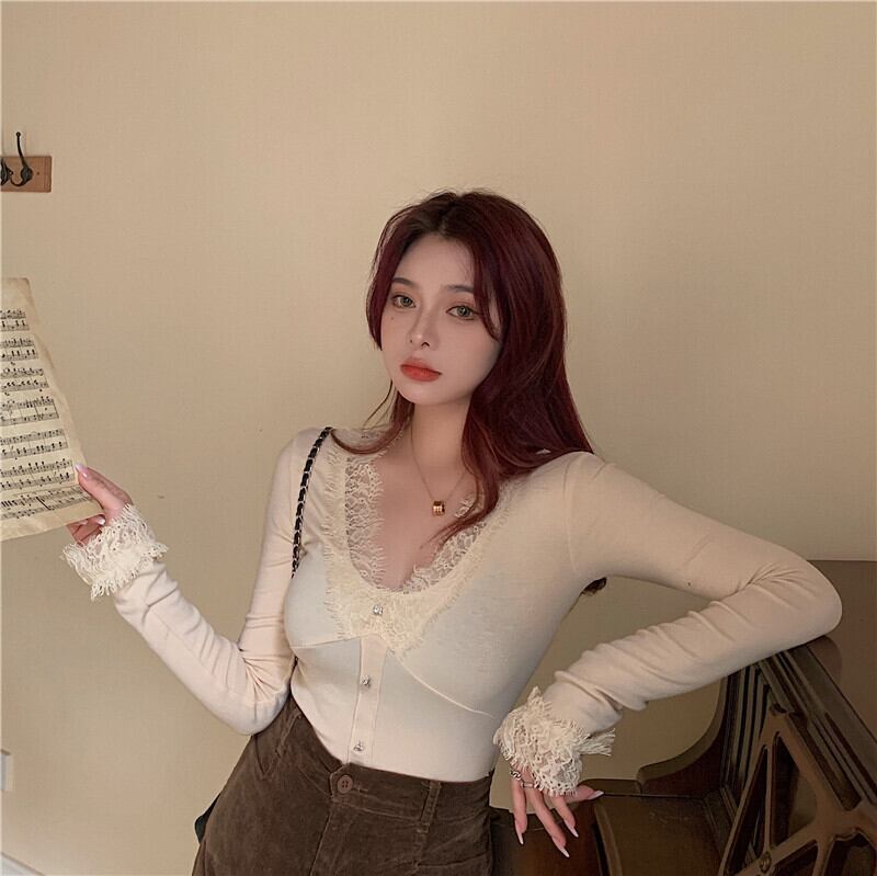 ニットセーター レースシャツ スプリングブラックトップス 春物 ステッチ ブラックストロベリース87674568164