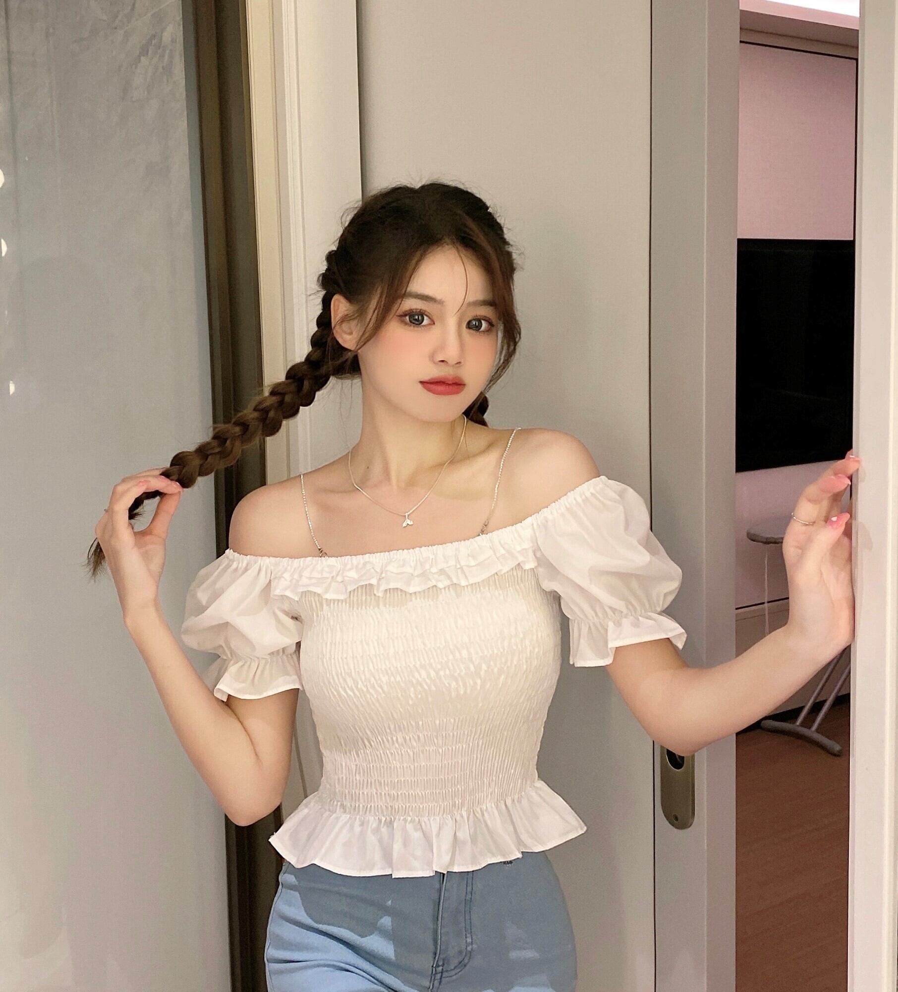 ブラックサマーイブニングホワイト半袖スリーブシャツ チェーン ショート ハーフスリーブ 夏物 ピュア ブラックストロベリース47861281339
