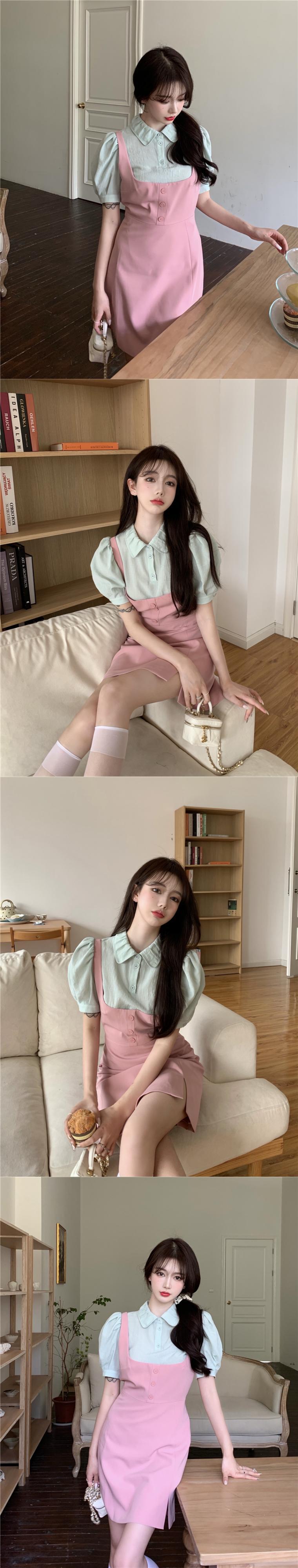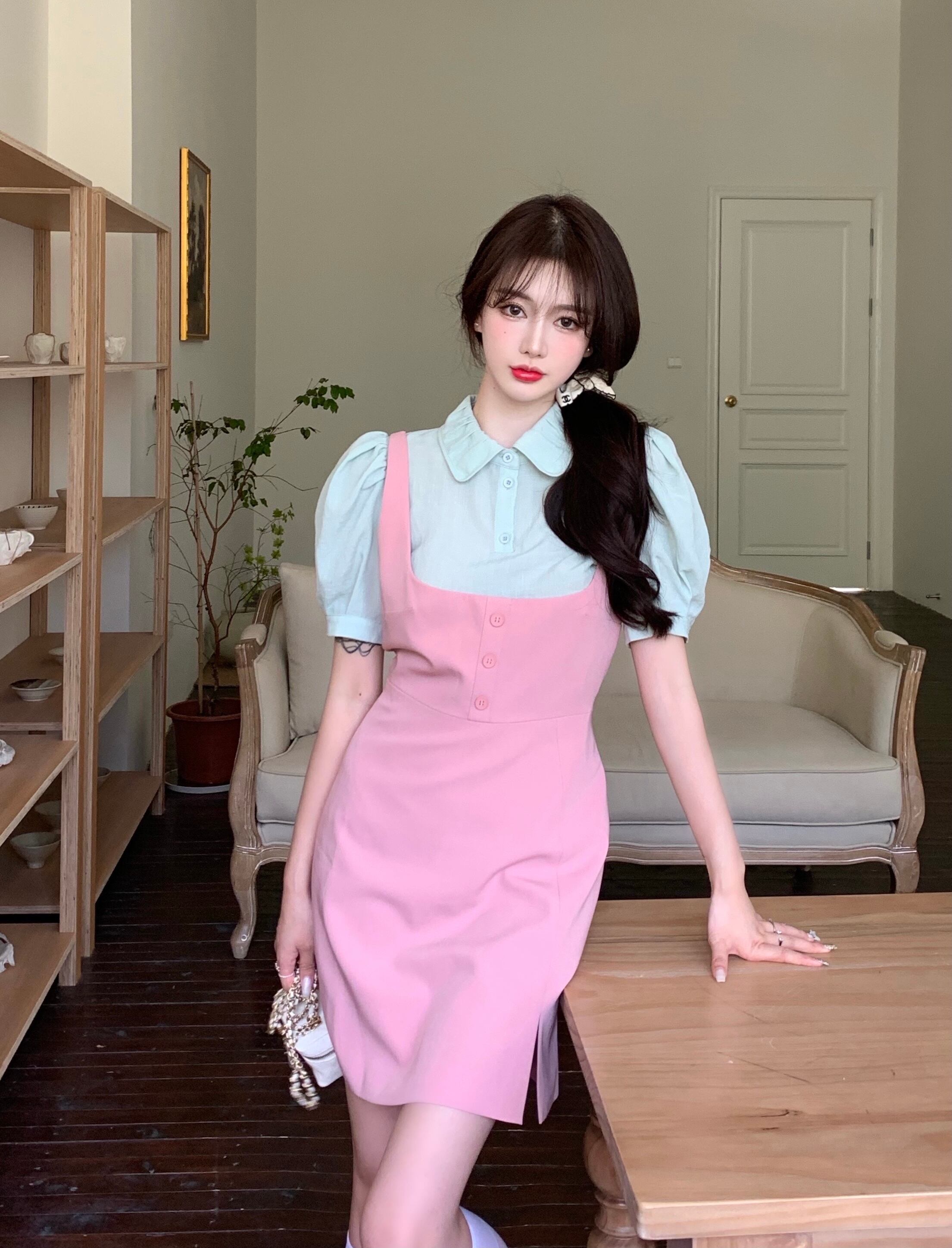 色:ミントグリーンのシャツ,チェリーピンクのスカート