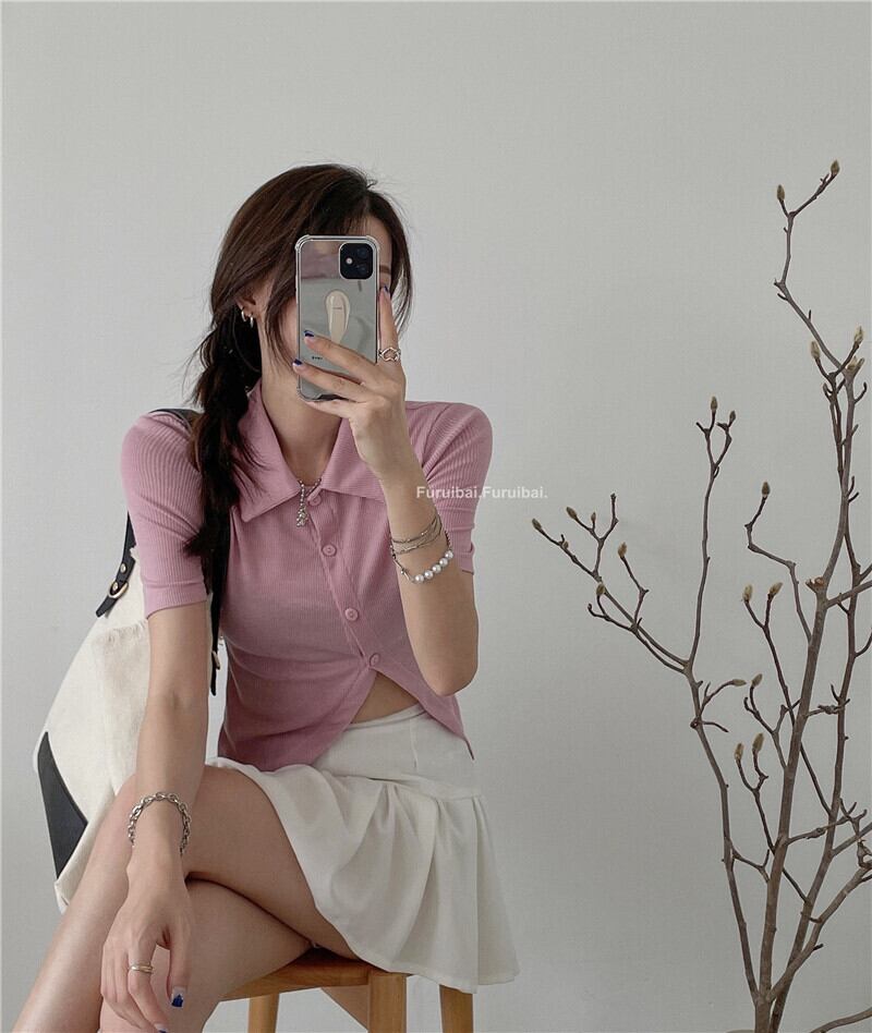 カラーニットカーディガンTシャツ シャツ レディースサマースタイルショートクロップド 夏物 ピュア ブラックストロベリース53313584261