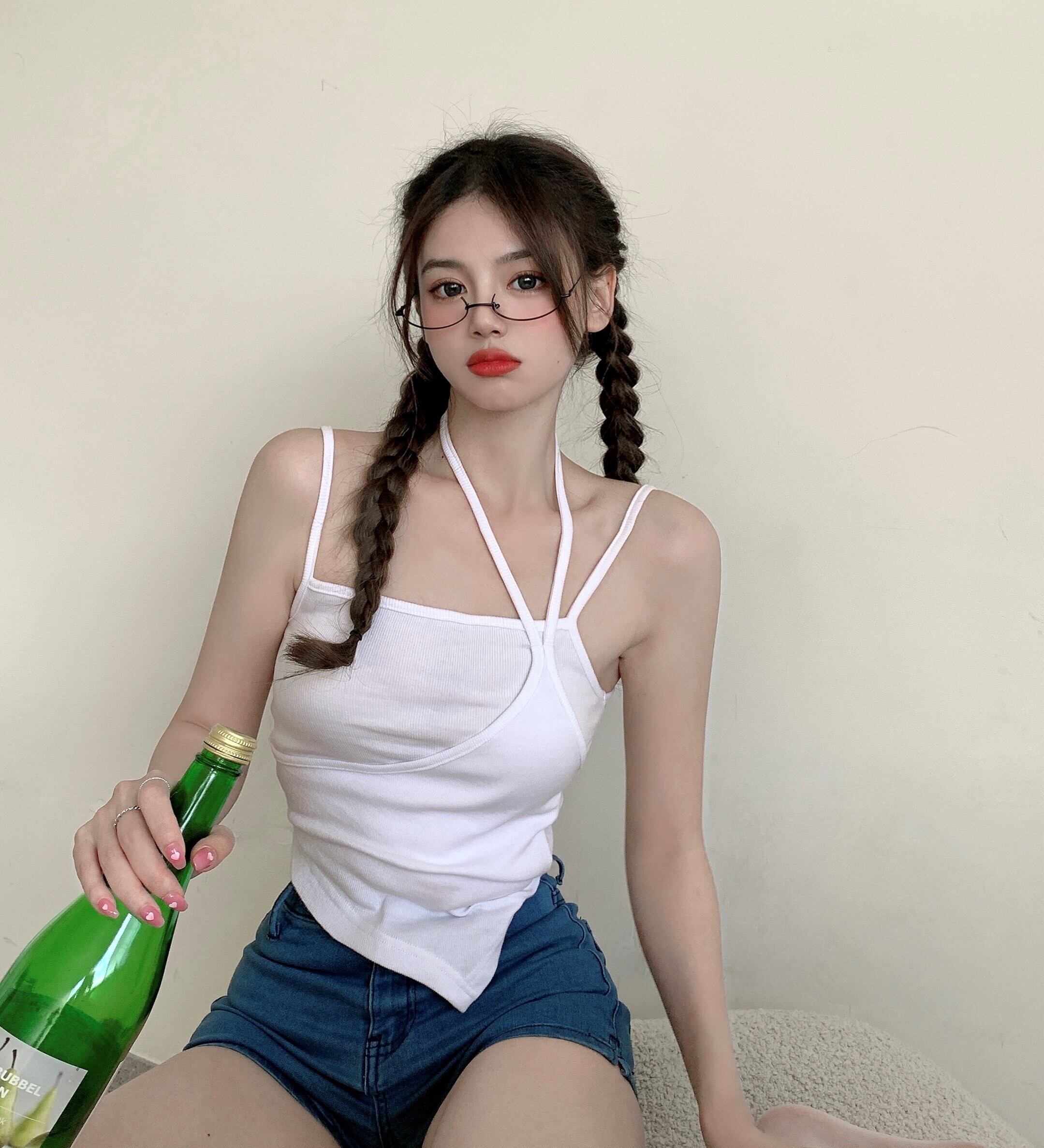 サマーホワイトショートホルタートップス 夏物 ピュア ブラックストロベリース42788474805