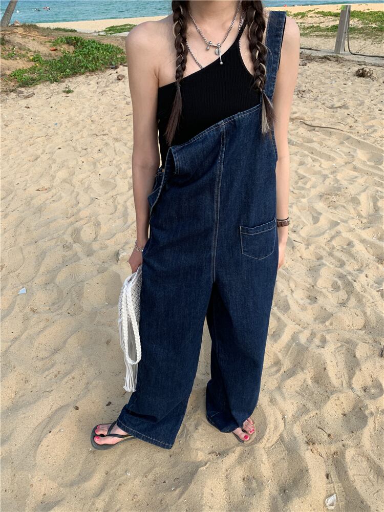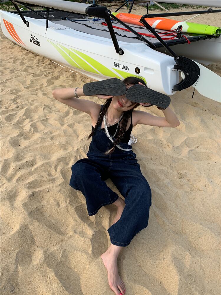 ジーンズ ルーズサマーハイウェスト薄手パンツ 夏物 ブラックストロベリース78246141705