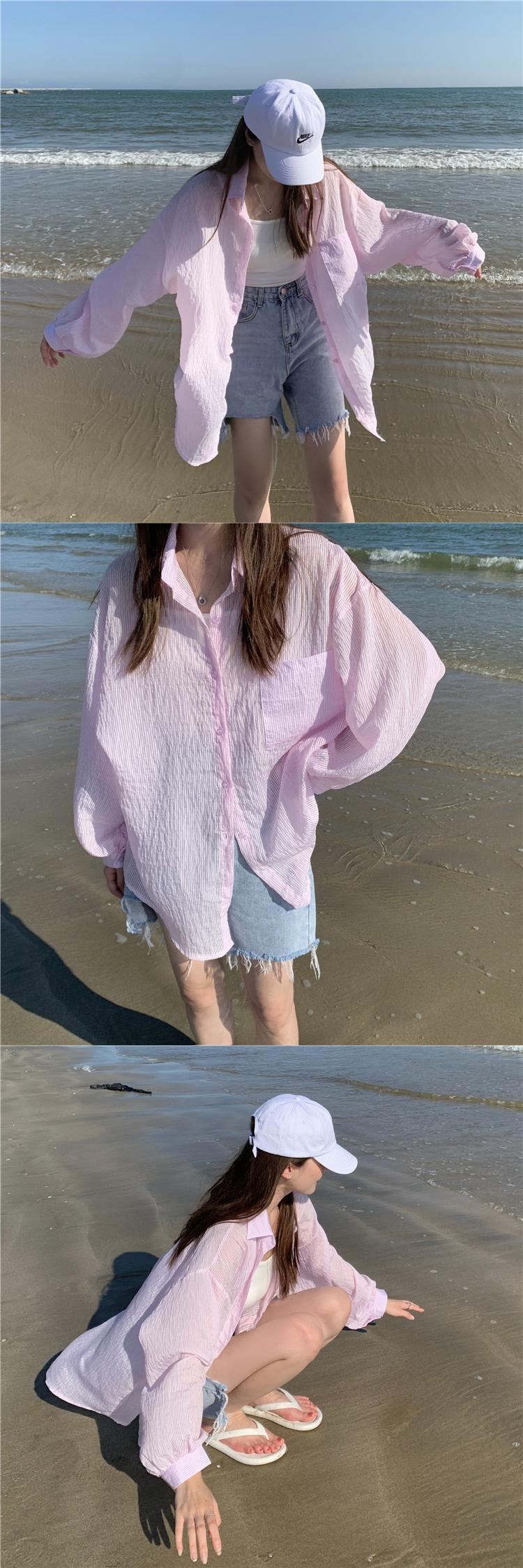 スタイルシャツ ジャケット サマー薄手カジュアルルーズトップス ロング 夏物 ブラックストロベリース91902932463