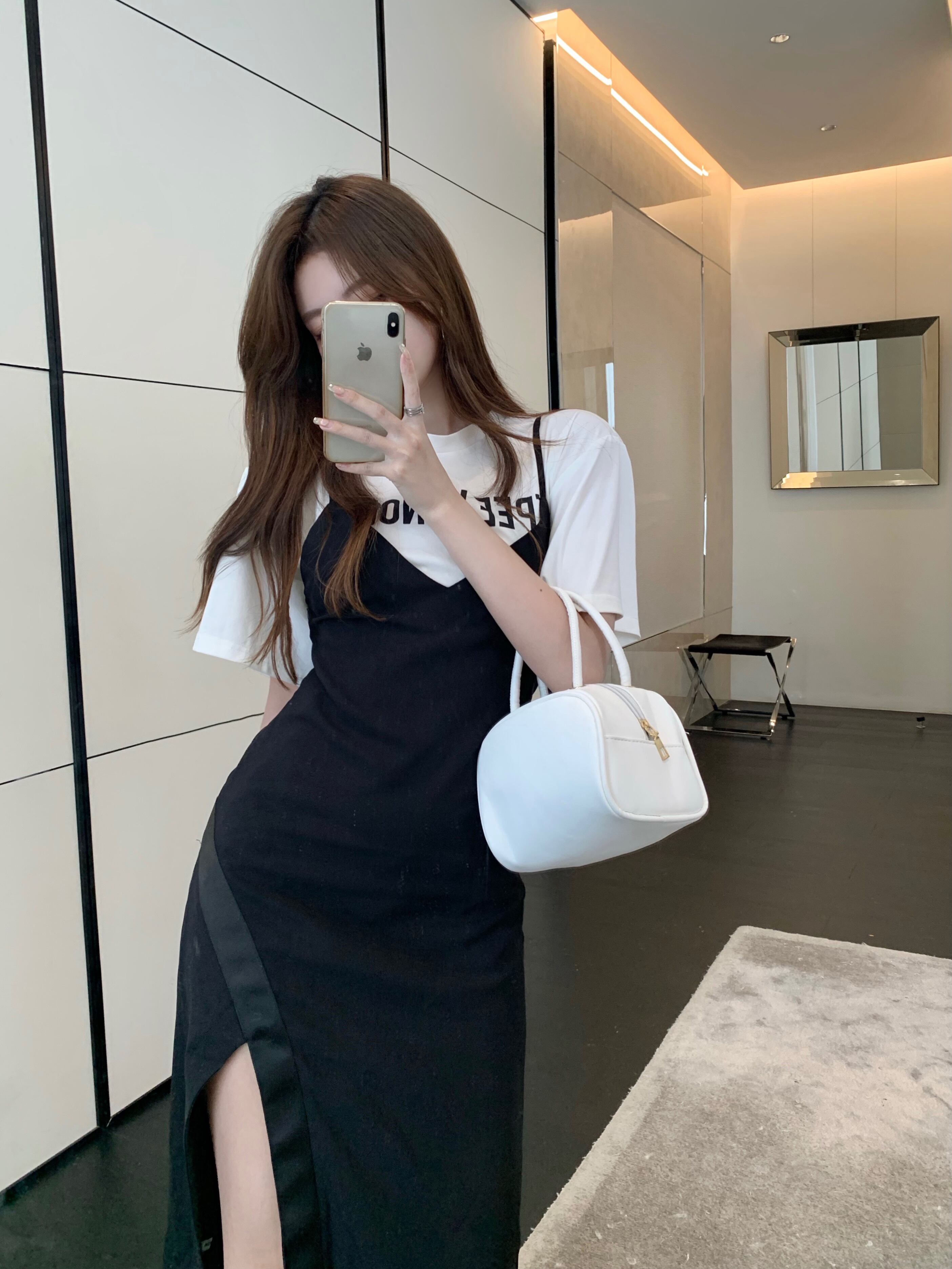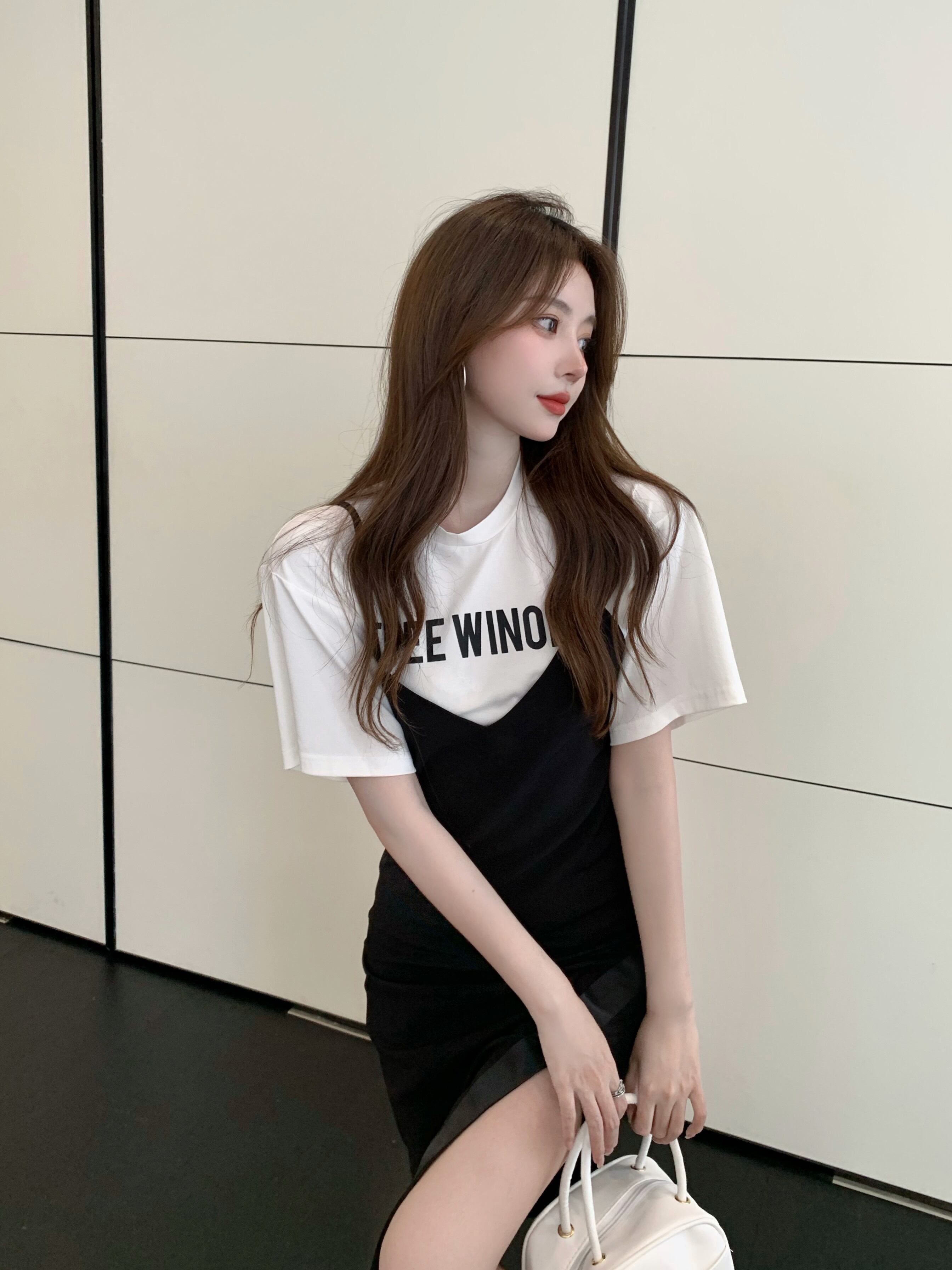 ツーピース ドレス サマースカート ウェスト 夏物 ブラックストロベリース49500953353