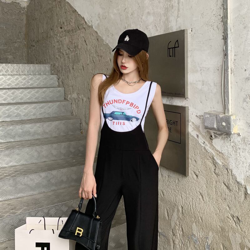 カジュアルパンツ レディースサマー薄手ハイウェストウェストワンピース 夏物 ブラックストロベリース41111103252