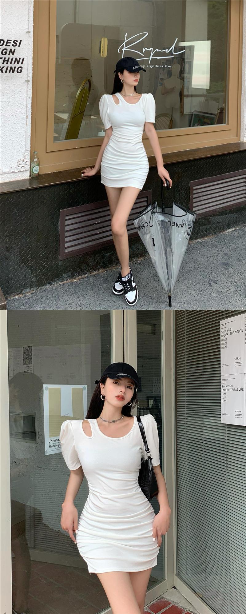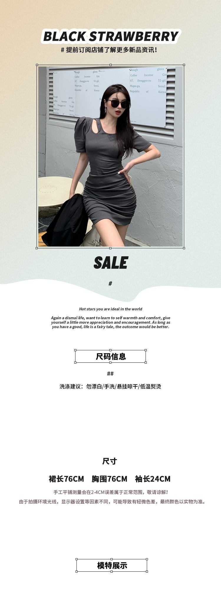スリーブドレス サマーショートスカート ウェスト 夏物 ブラックストロベリース94416770322