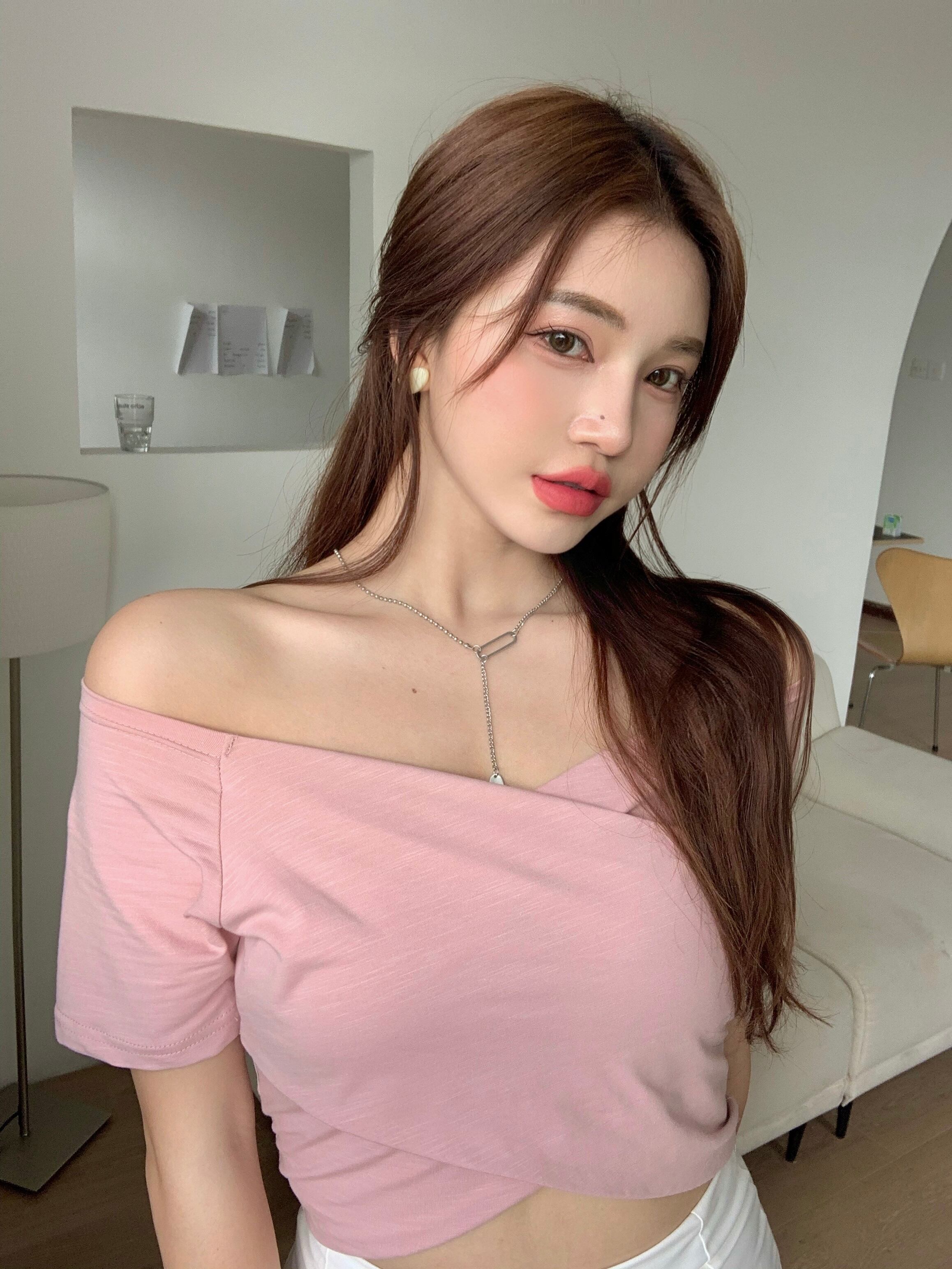 Tシャツ サマー薄手トップス ピンク 夏物 ブラックストロベリース84581162418