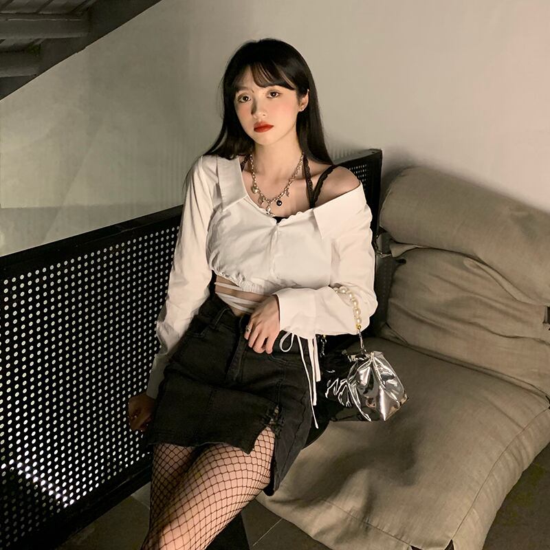 ストラップレスシャツ サマーショート薄手 ロング 夏物 ブラックストロベリース91822782788