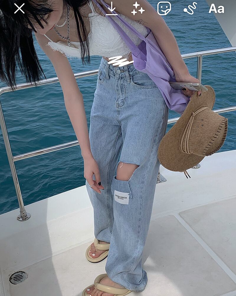 ジーンズ サマー薄手ハイウェストウェストルーズワイドレッグパンツ 夏物 ワイドパンツ ブラックストロベリース40356809824