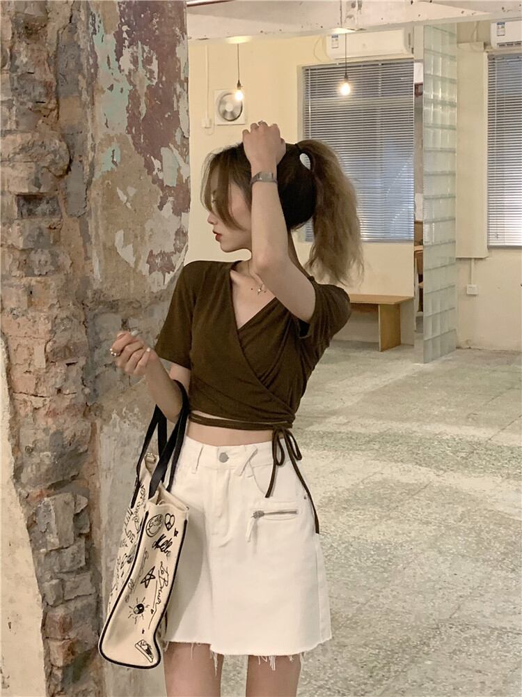 Tシャツ Vネックブラックトップス サマースタイル 夏物 ブラックストロベリース54459639747