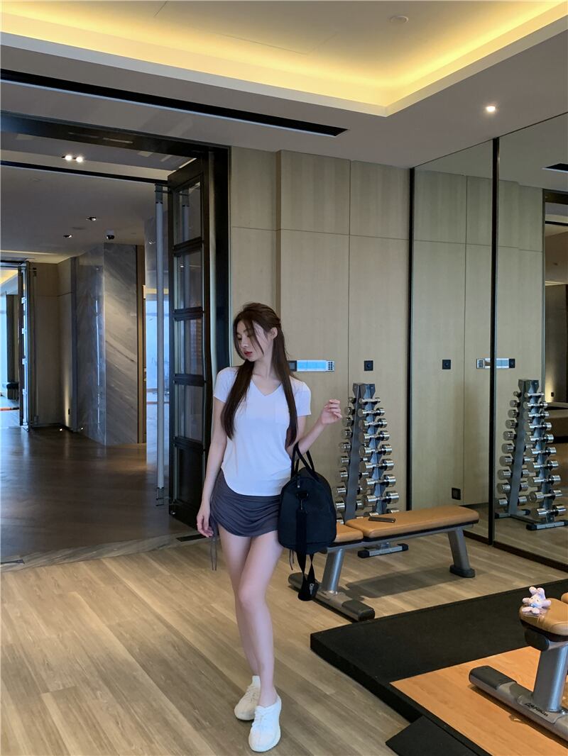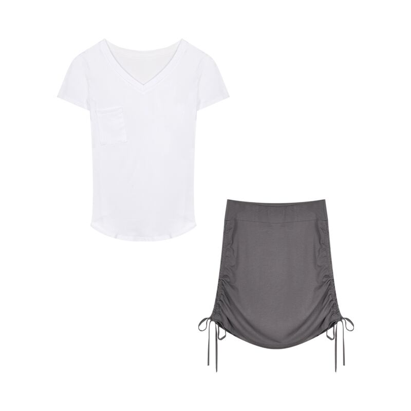 色:グレーのTシャツ,白いTシャツ,黒スカート,グレースカート