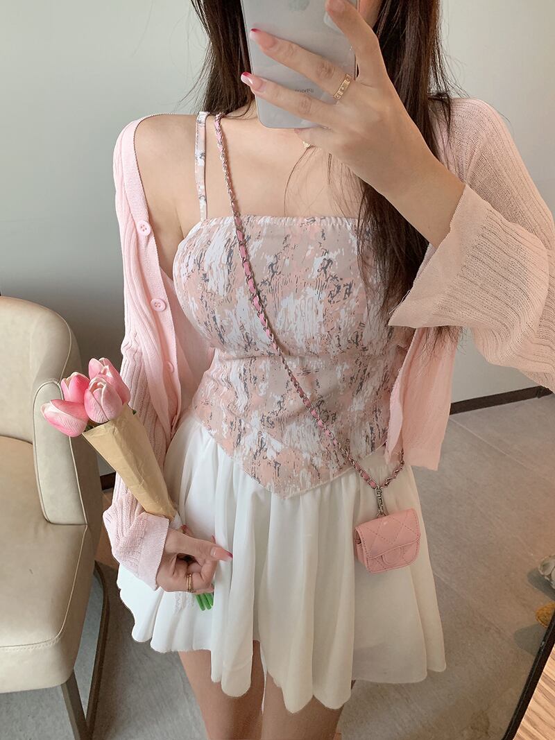 ニットカーディガンジャケット レディースサマー薄手ブラウス ショートトップス ロング ピンク 大人ガーリー スウィート キュート カジュアル 夏物 ピュア ブラックストロベリース53521651921