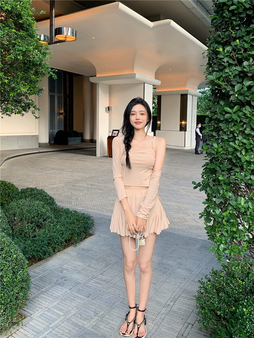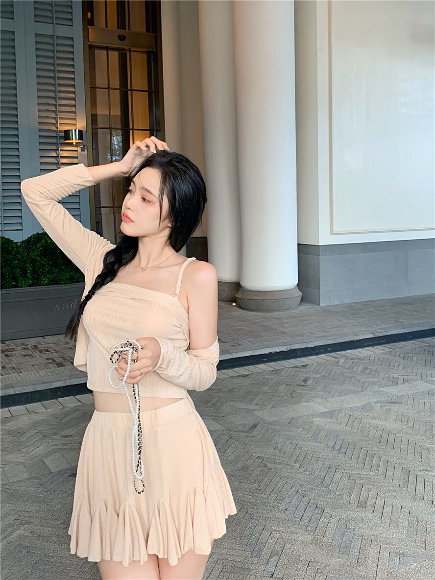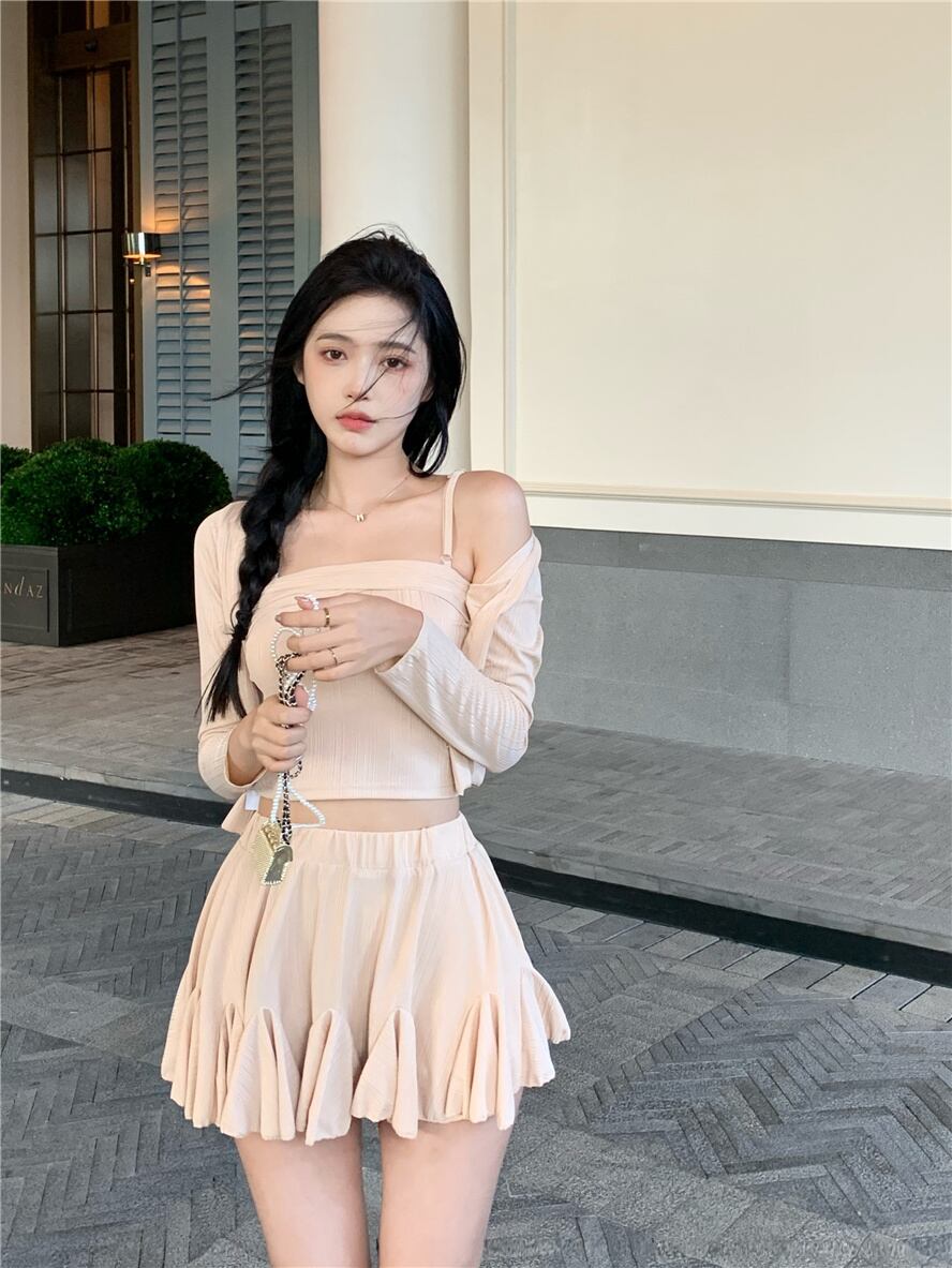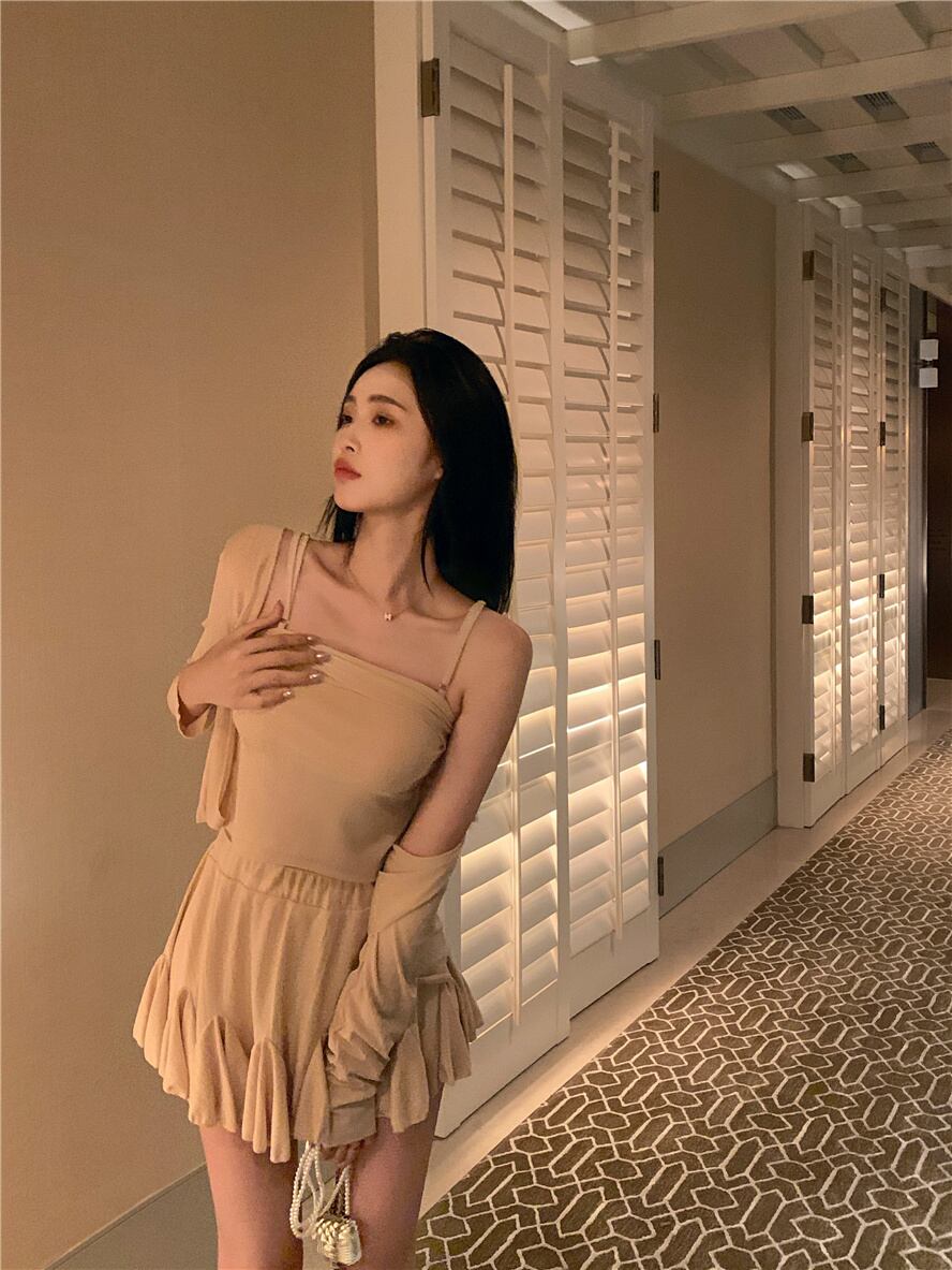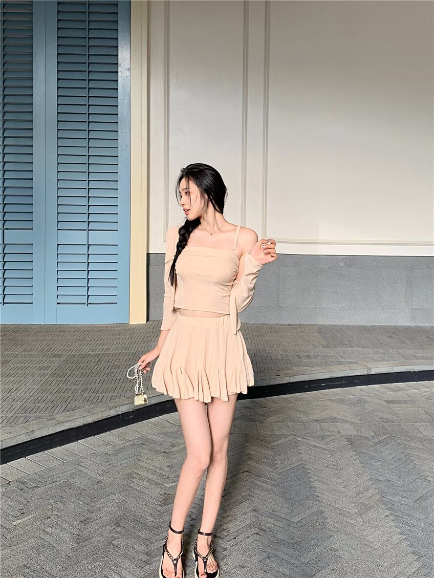 色:ベージュカーディガン,ベージュのスリング,ベージュのスカート