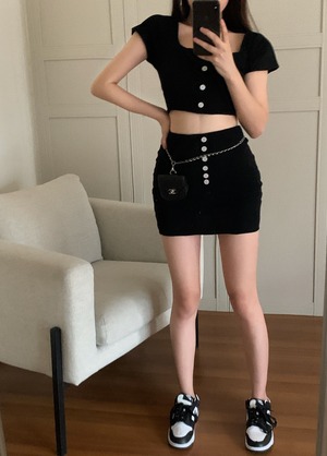トップス ハイウェストウェストスカート サマー ストリート 夏物 ブラックストロベリース57422048008