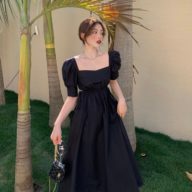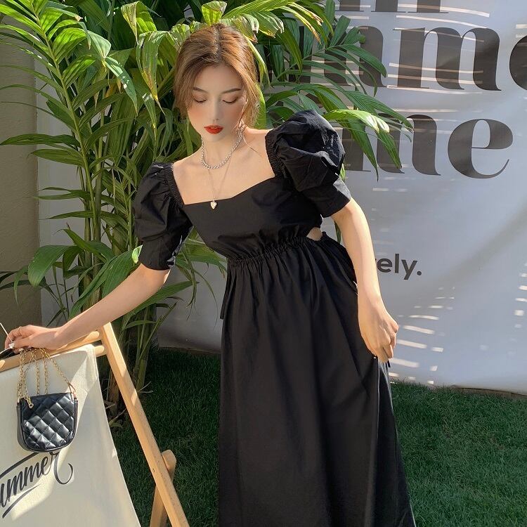 ドレス スタイルスタンダードブラックカラースカート サマー レトロ 夏物 スクウェア ブラックストロベリース10962455983