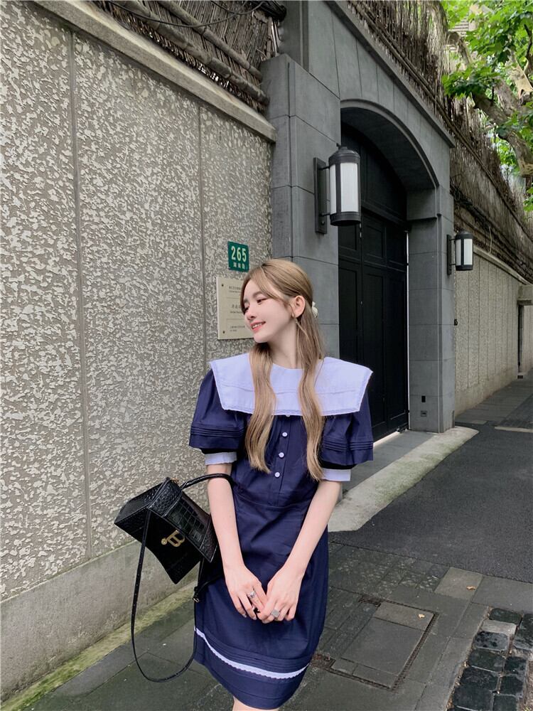 ワンピースドレス バックショートスカート サマースタイルウェストレース 夏物 ピュア ブラックストロベリース19916206803