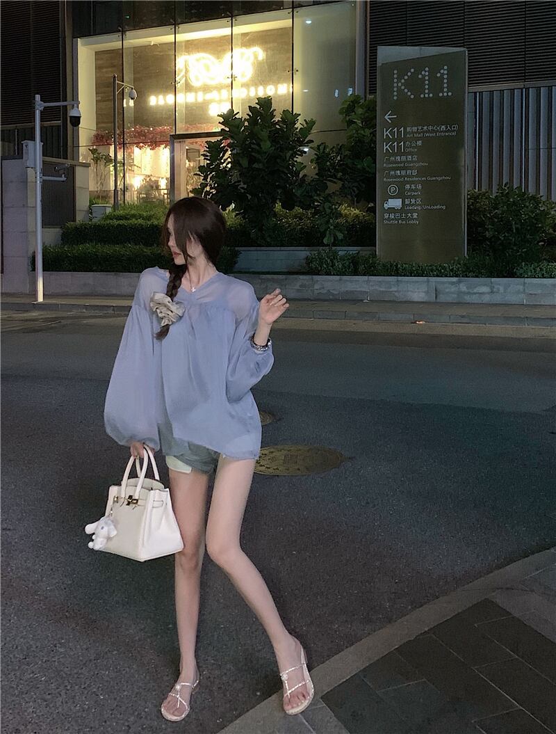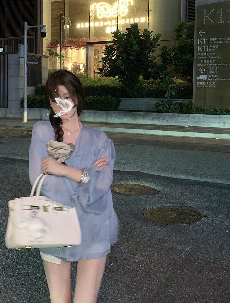 メッシュブラウス Tシャツ サマー薄手カジュアルルーズブルートップス ロング 夏物 ブラックストロベリース51180149207