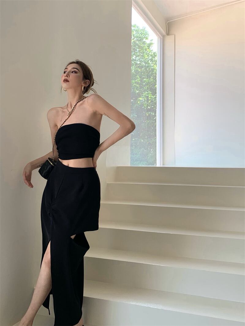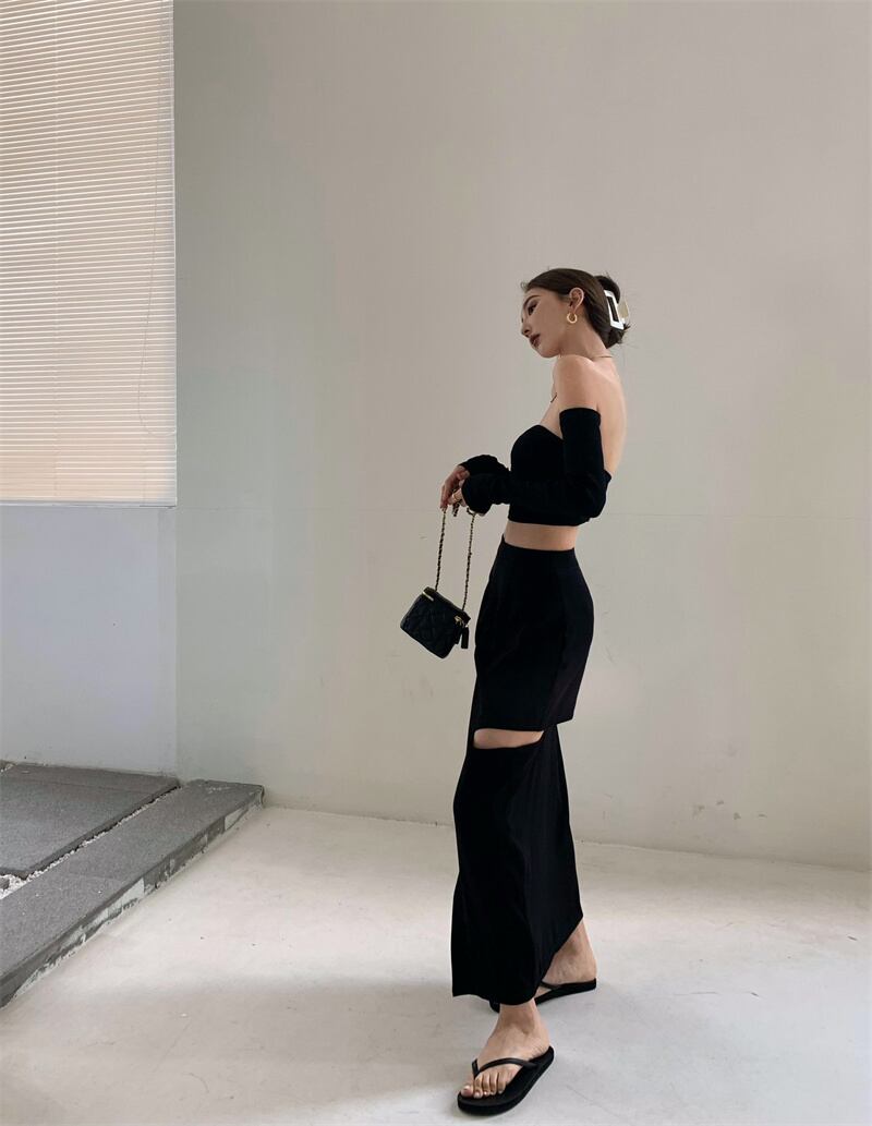 スカート ハイウェストウェスト薄手ロングサマー 夏物 ブラックストロベリース17643230190