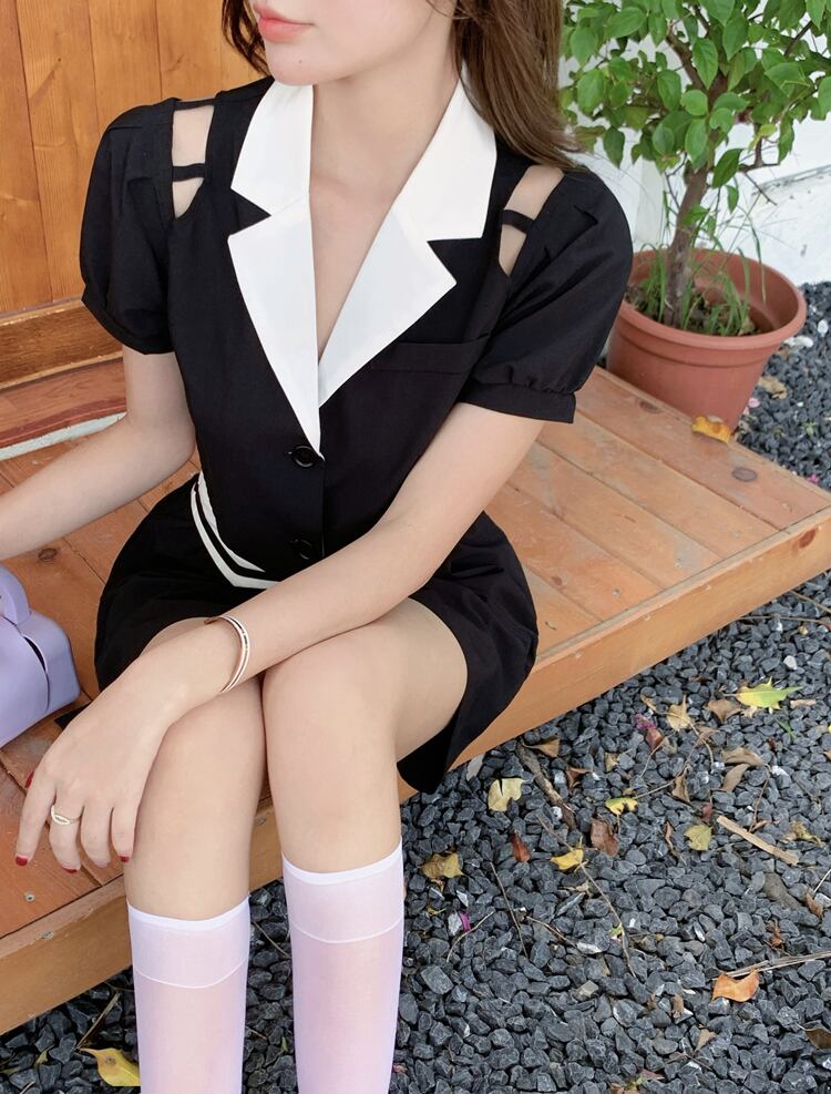 スリーブストラップレス半袖シャツ サマーブラックトップス ショート ハーフスリーブ 夏物 ブラックストロベリース55199424654