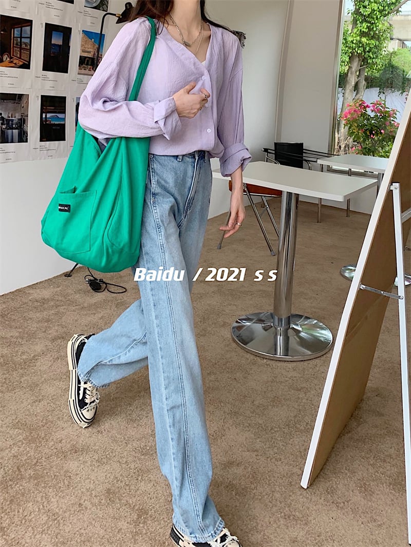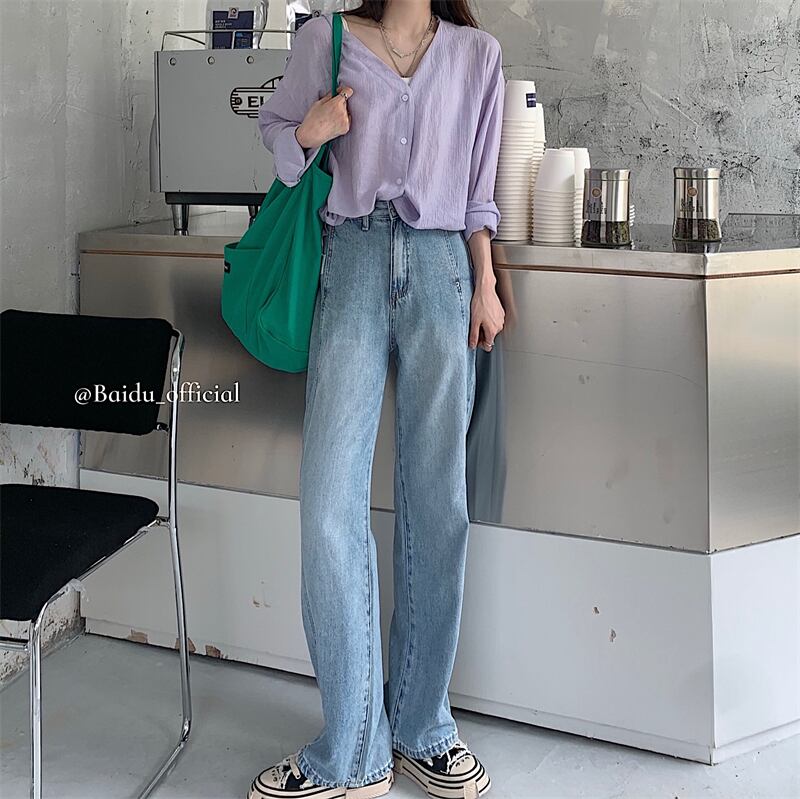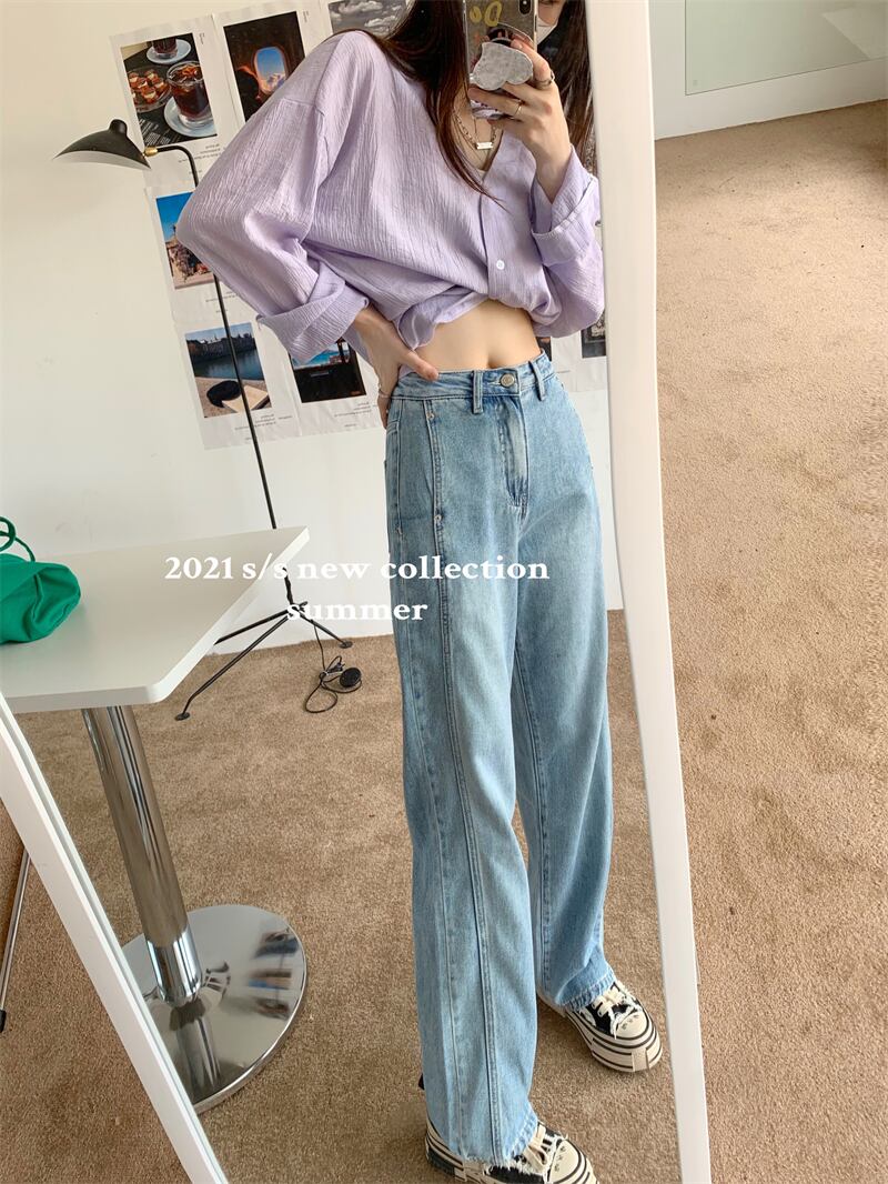スタンダードジーンズ レディースサマー薄手ハイウェストウェストルーズパンツ レトロ 夏物 ブラックストロベリース93714061234