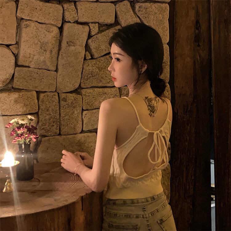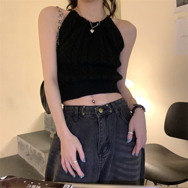 ニットサマーショートスタンダードホルタートップス レトロ 夏物 ブラックストロベリース4731592311