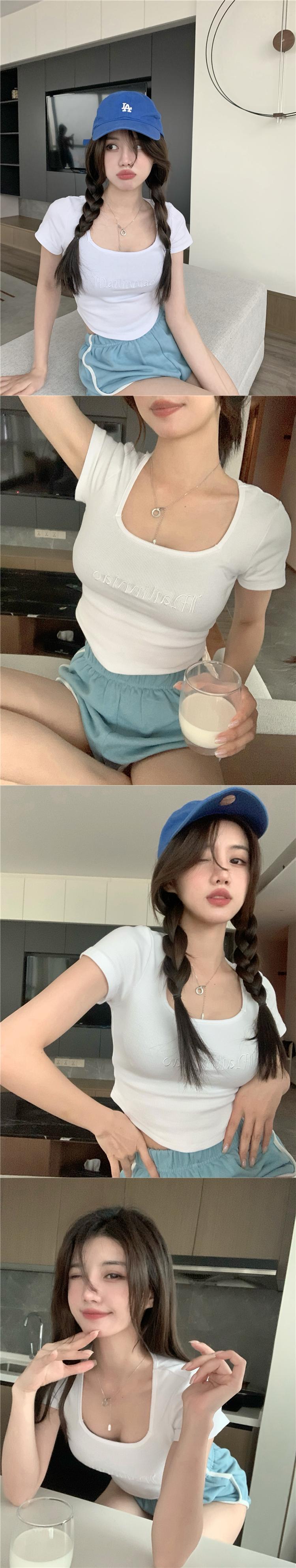 スタンダードプリントショートTシャツ サマー薄手スリムトップス レトロ 夏物 スクウェア ヨーロピアン ブラックストロベリース87004575311