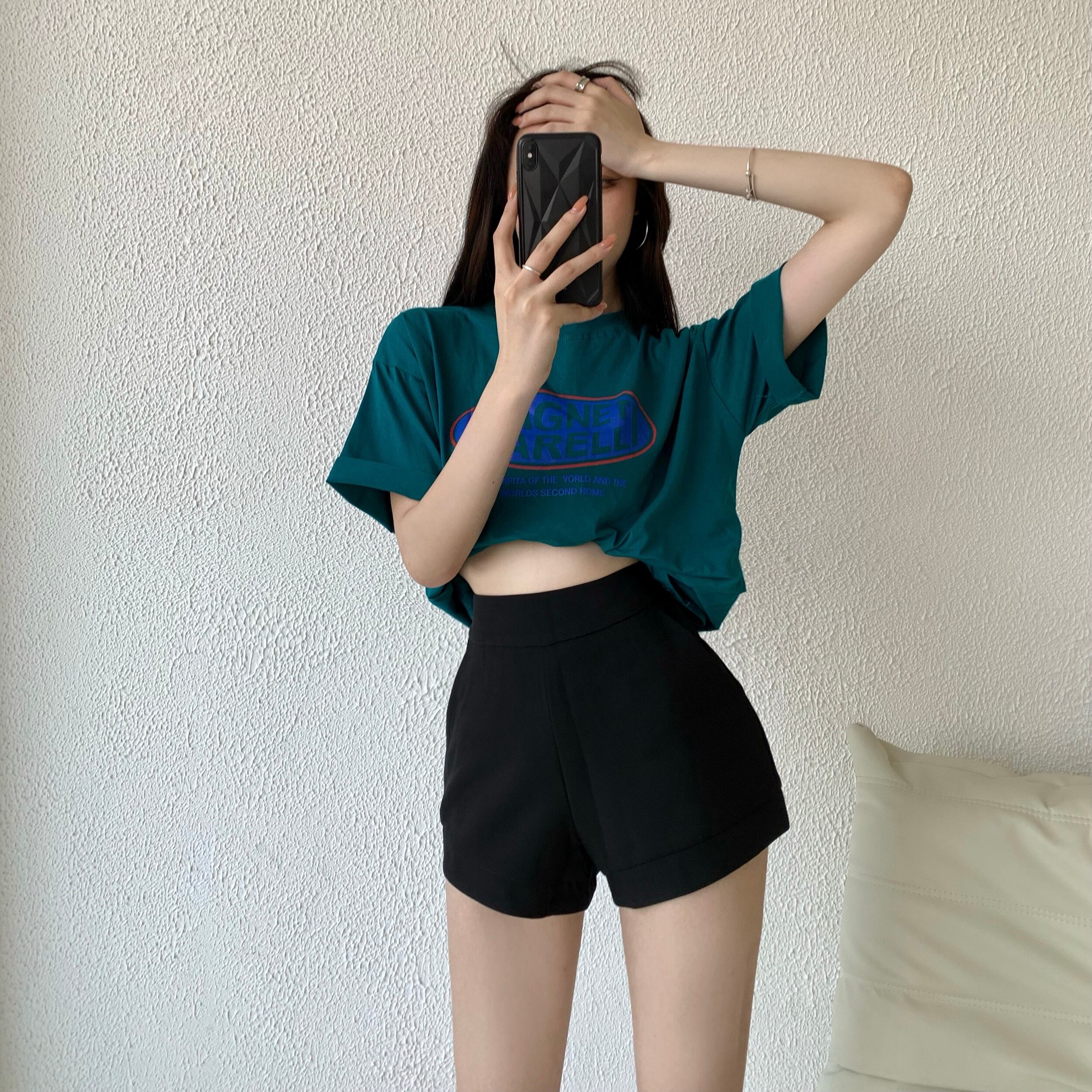 スタンダードプリントTシャツ シャツ サマースタイルカジュアルルーズ レトロ 夏物 ブラックストロベリース27277600402