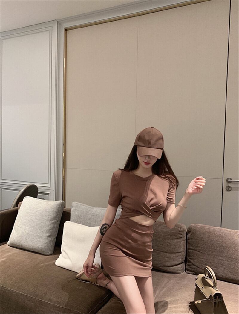 色:カーキTシャツ,黒いTシャツ,カーキ色のスカート,黒スカート