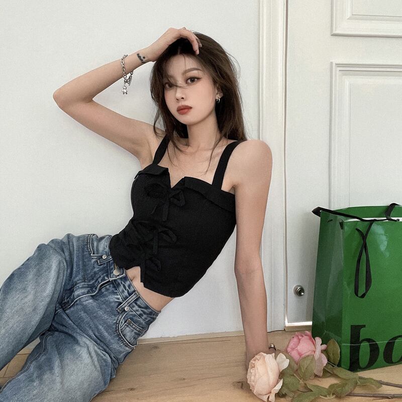 サマースタンダードリボンホワイトトップス レトロ 夏物 ピュア ブラックストロベリース41628028600