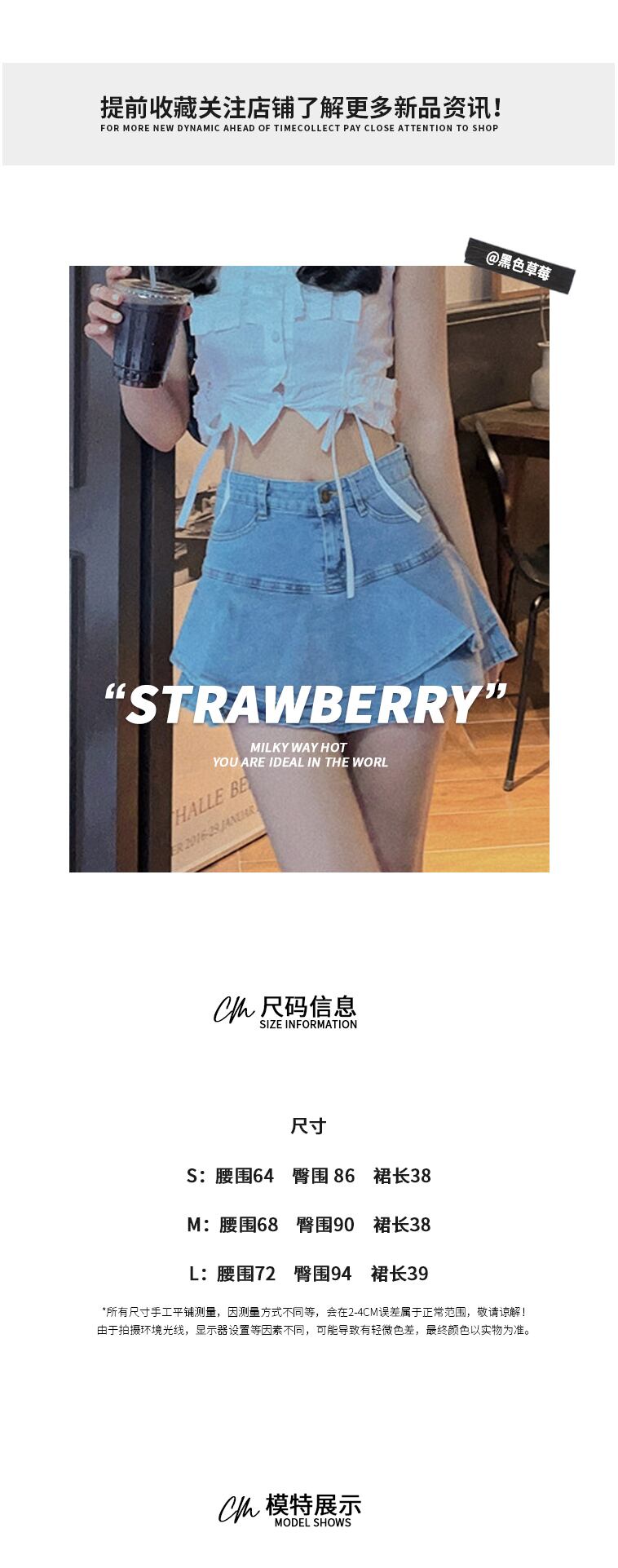 スカート ハイウェストウェストショートサマーAラインプリーツ 夏物 ブラックストロベリース92396371354