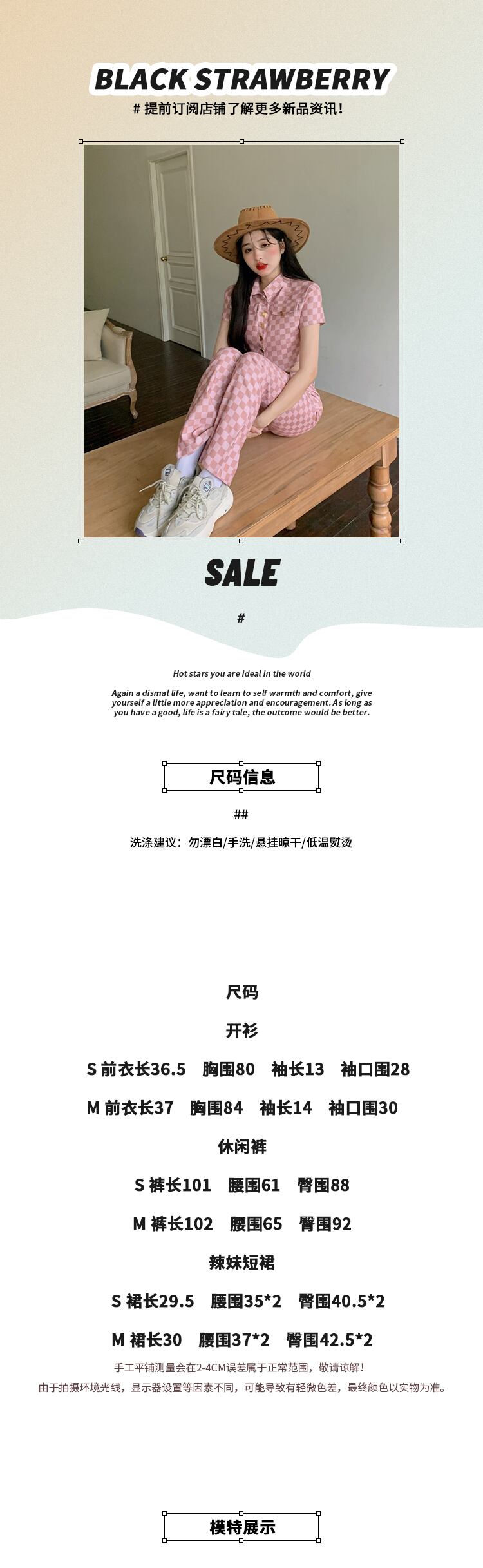ジャケット サマー薄手格子柄ショートカジュアルカーディガン ピンク 大人ガーリー スウィート キュート 夏物 ブラックストロベリース84623643304