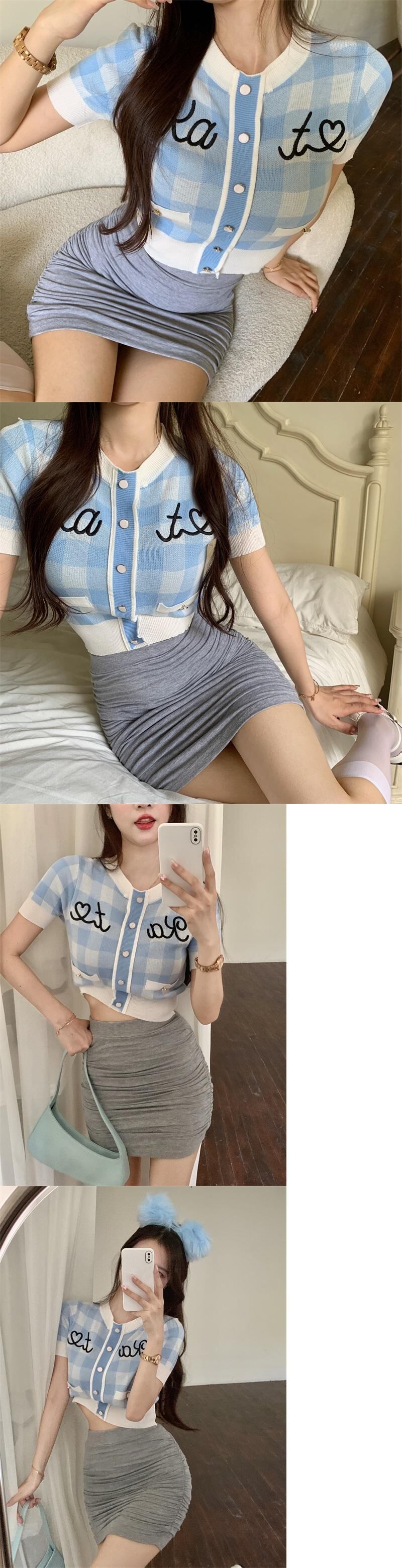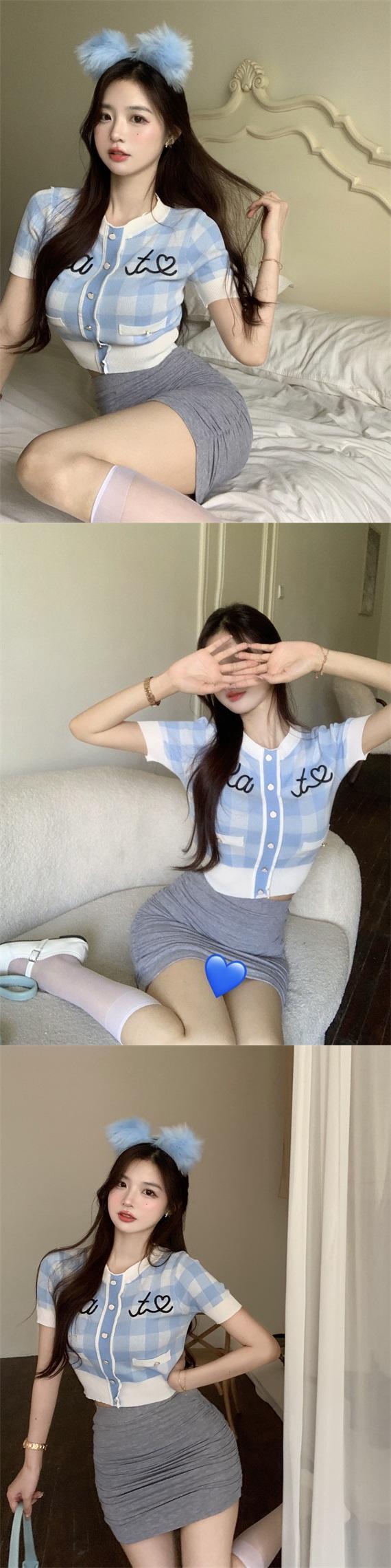 格子柄セーター 刺繍ショートカーディガンジャケット サマー薄手スタンダードブルートップス レトロ 夏物 シルク ブラックストロベリース41954616672