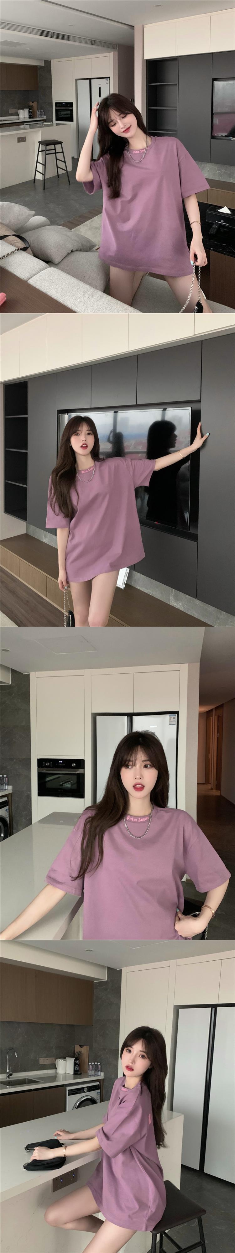 Tシャツ サマーロングルーズスタイル薄手グリーントップス 夏物 ブラックストロベリース97876500855